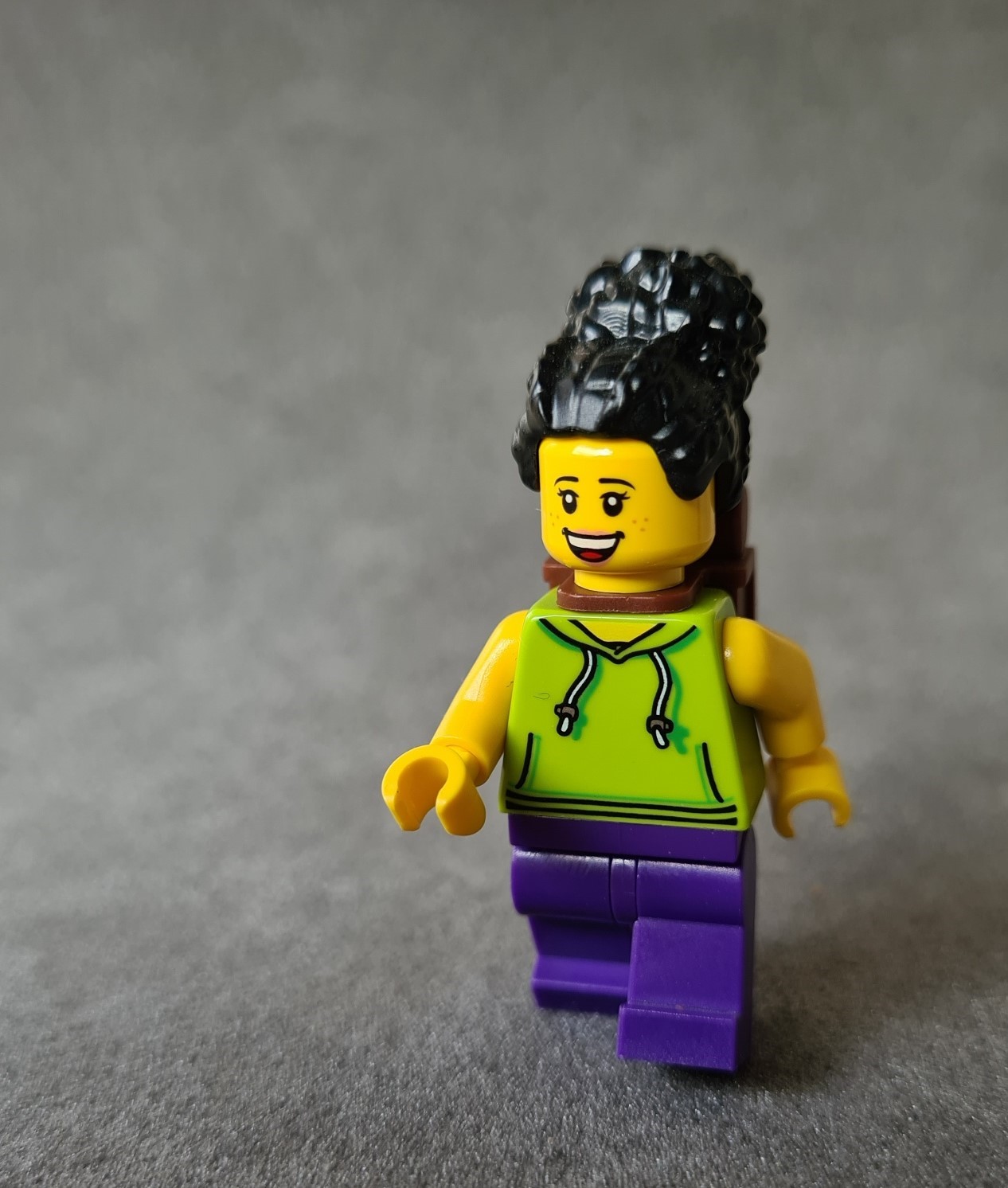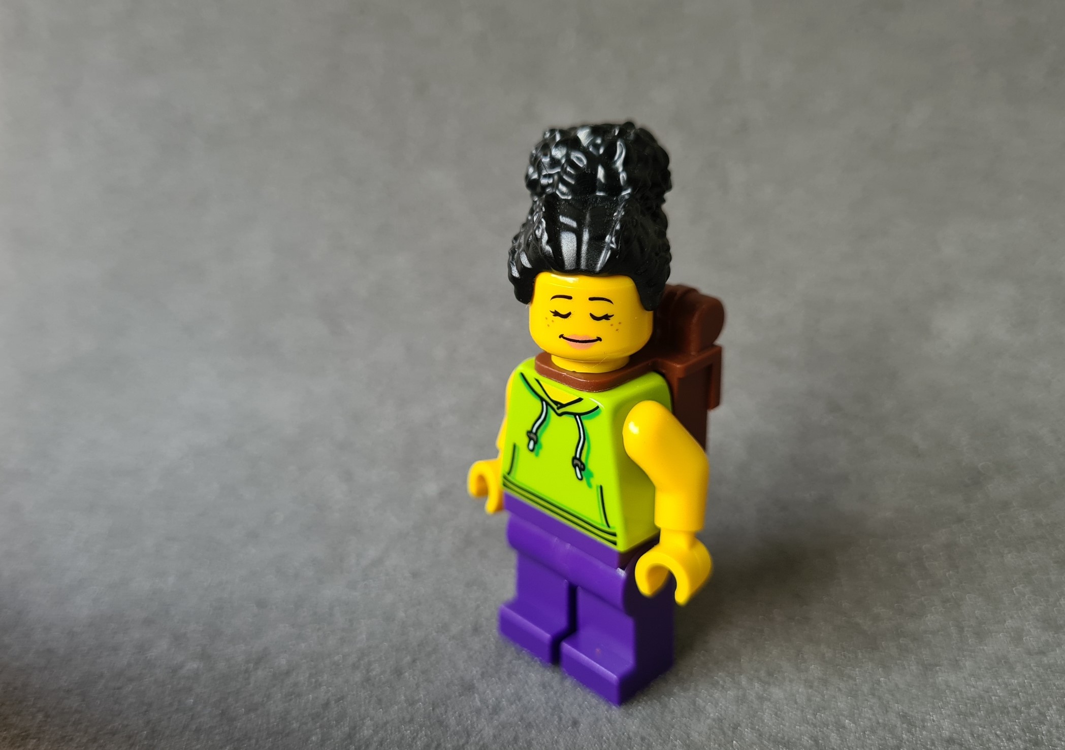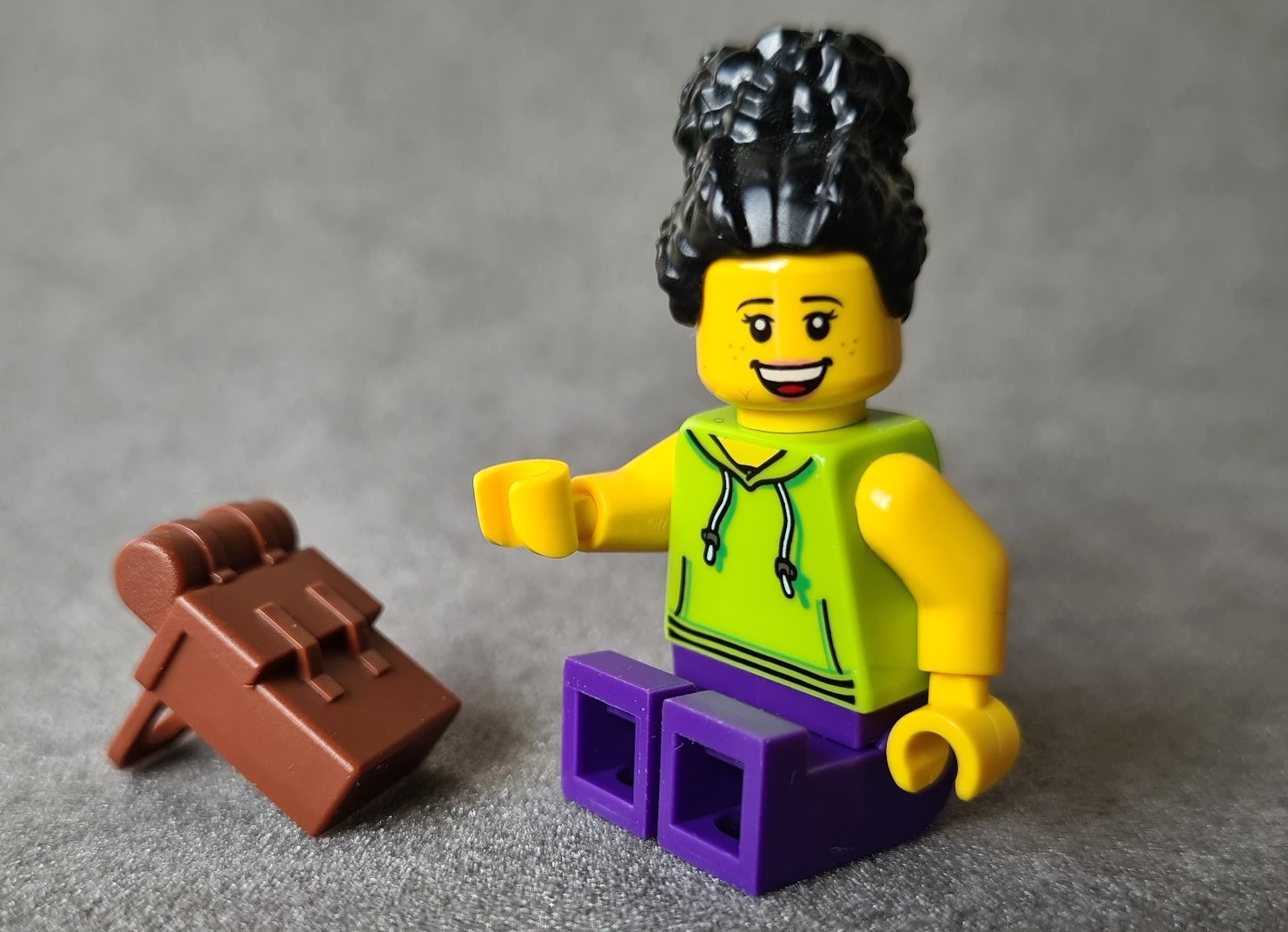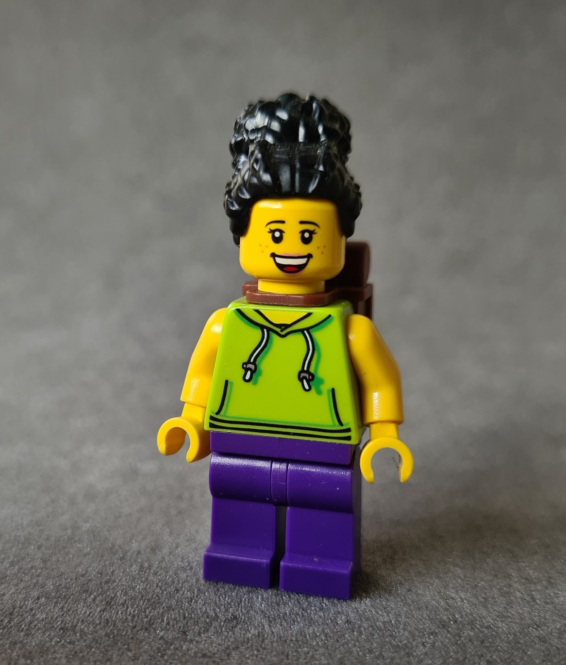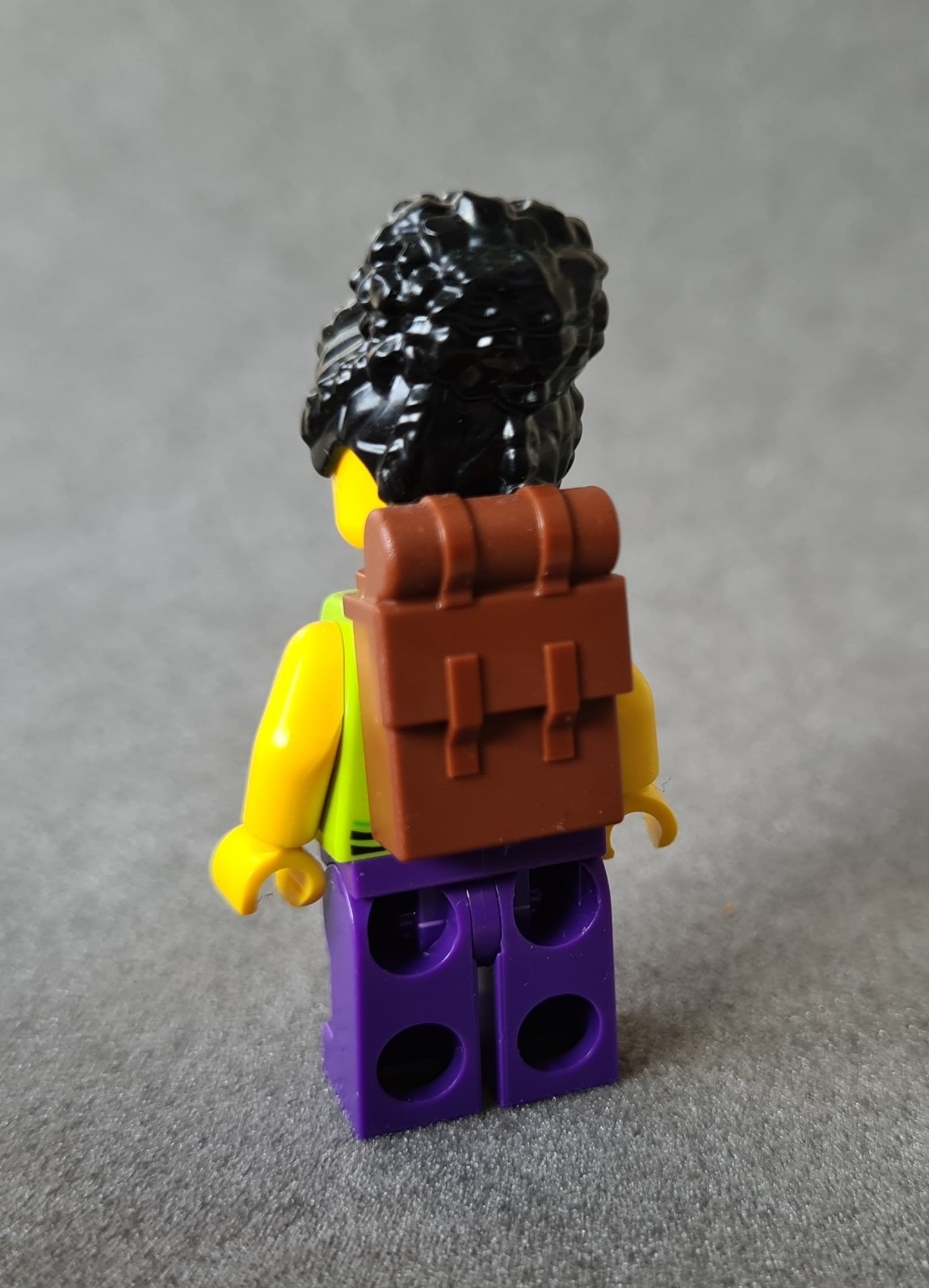 Lego Backpacker is a simple build. She is comprised of just five parts, including her backpack. There is no display plinth as supplied with some other Lego minifigures.