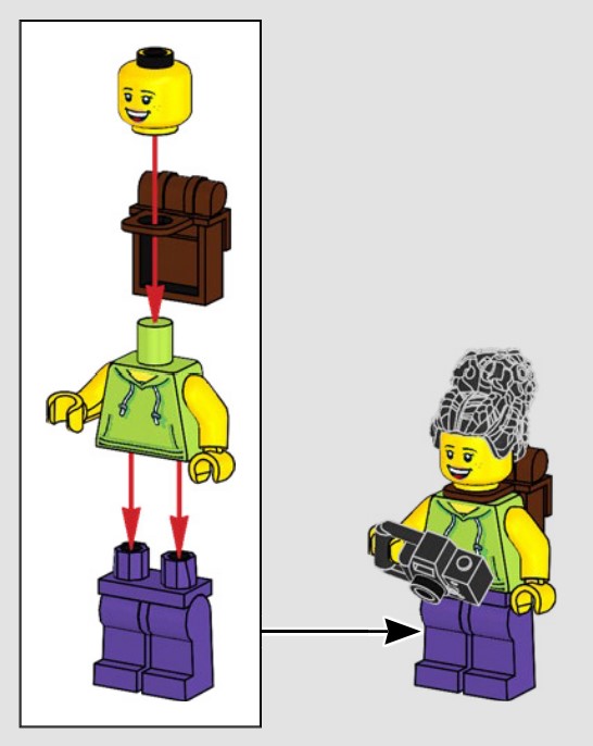 An oversized camera is included in the set that could be given to her if wished. If so, then at least ensure she has the correct face showing. Closed eyes while photographing just isn’t going to work! Lego also provide an online build instruction pdf.