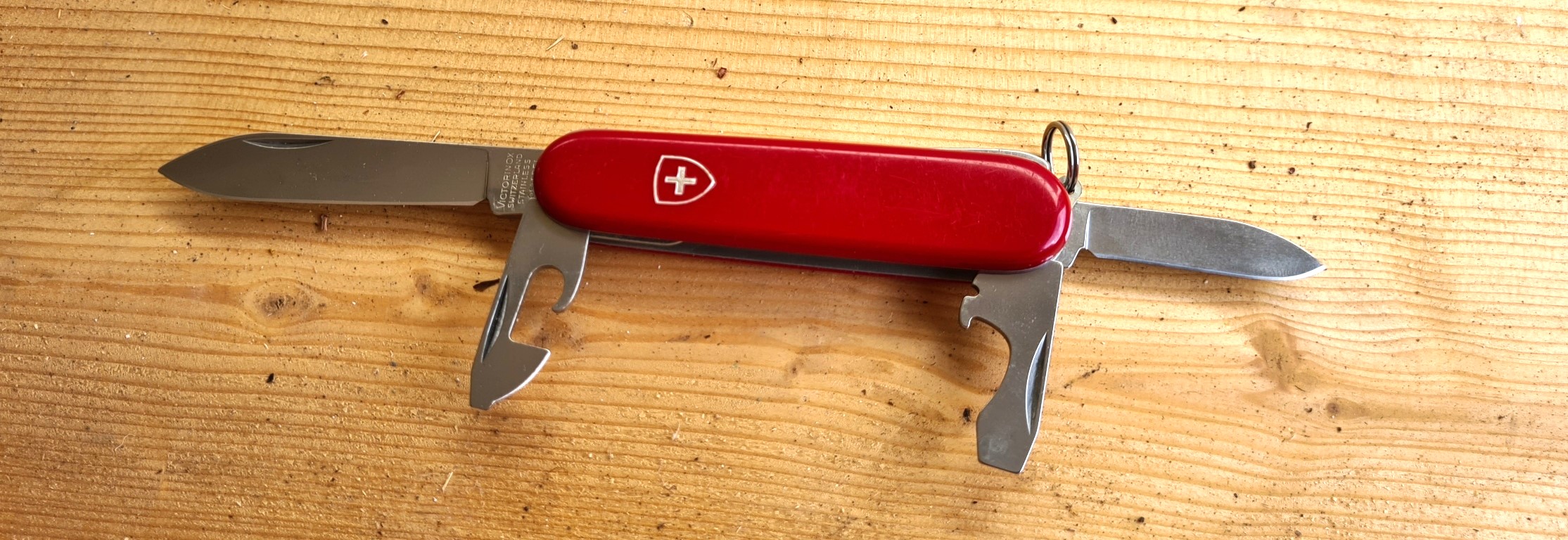 Three Points of the Compass dislikes the toothpicks found on Victorinox knives as the slot in the handle scales can harbour bacteria. While the tweezers are very flexible with straight tips so of limited practical use. The thinner 84mm knives with Alox scales don’t have these scale tools.