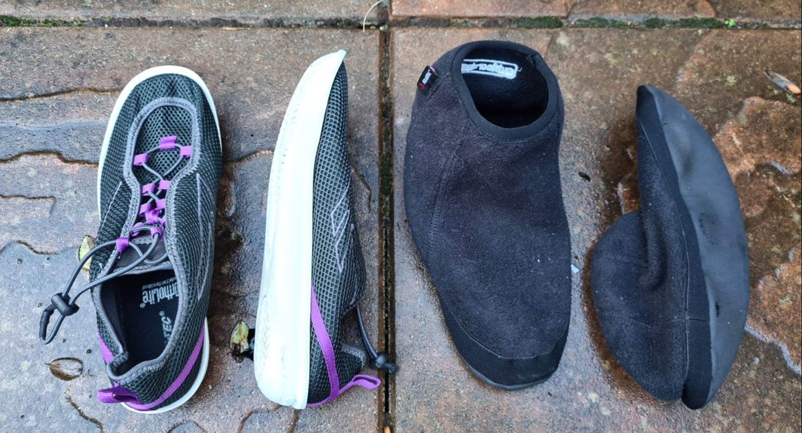 Feet appreciate a rest at the end of the day. Relief from walking, relief from being stood on, relief from the confines of footwear, relieved of sweat and grime. If backpacking, there is a decision to be made, whether to carry camp shoes. Following decades of including them, Three Points of the Compass doesn’t use them any more.