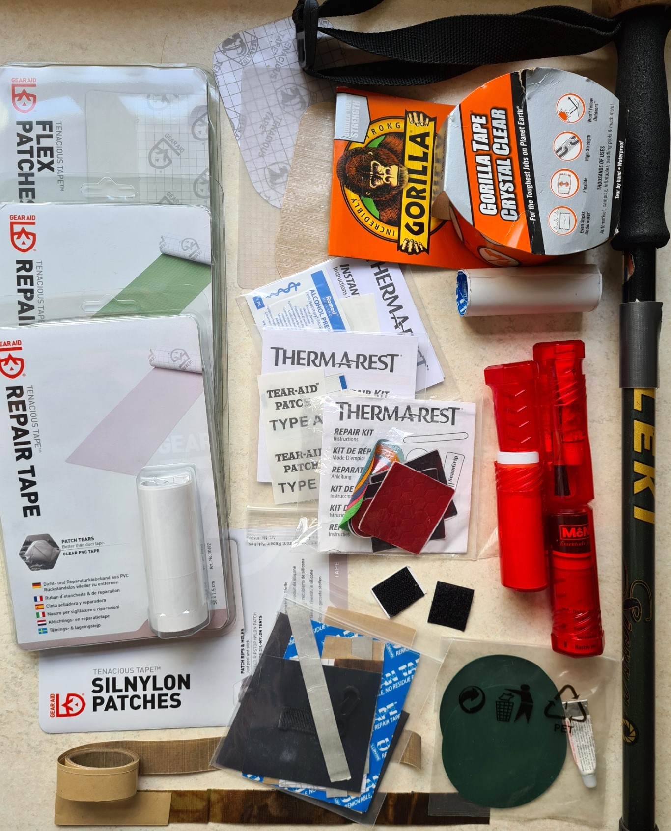Anyone who has been backpacking a few years will have invariably accumulated a plethora of repair tapes and patches along the way, be it a roll of tape from the local hardware store, self-adhesive flashing tape when making pot cosies, or repair kits supplied with shelters or sleeping mats. But what, if anything, to actually carry on trail? This is what Three Points of the Compass is packing along.