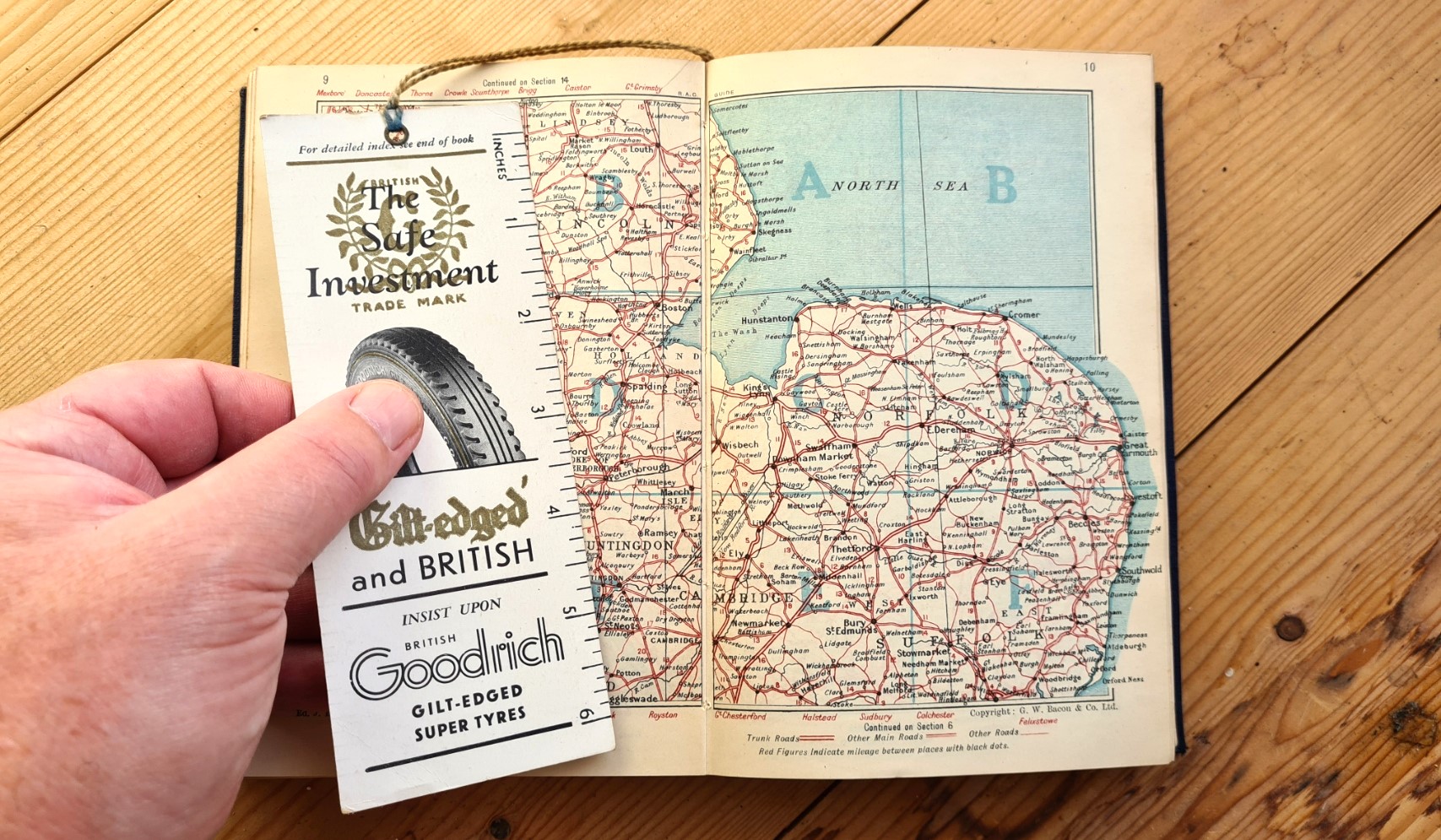 Simple scale rules were included with some road atlases published by the Royal Automobile Club. These acted as both bookmark and map measure.