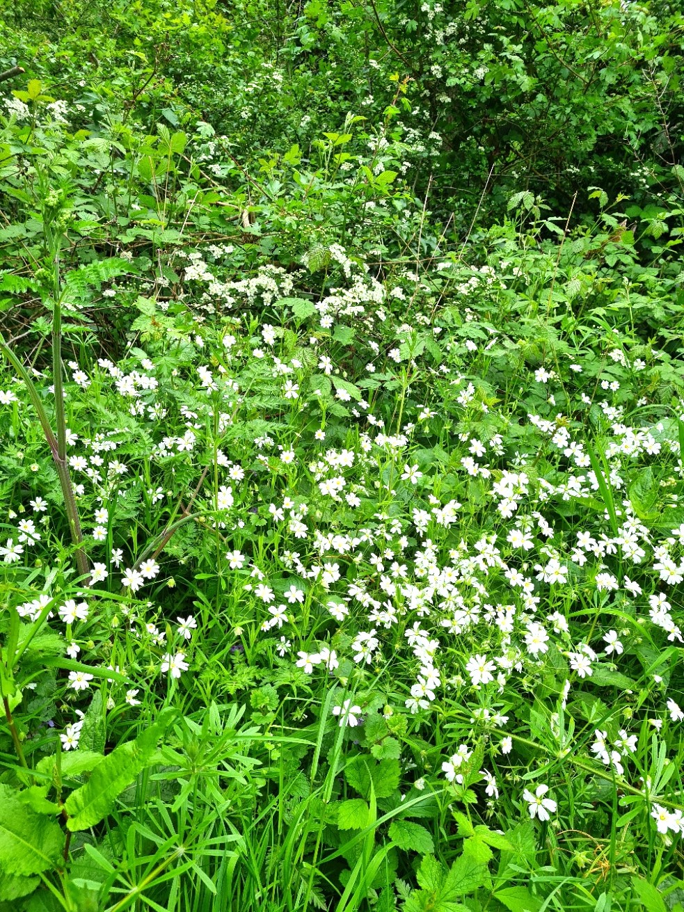 That was my mornings walk. Past locks, though shorts tracts of woodland, swishing through the wide meadows, past crumbling wartime pill boxes, raising a hand in greeting to paddlers on the water, struggling with my plant I.D., accompanied by birdsong, trying to avoid the muddier sections and generally enjoying a decent spring walk.