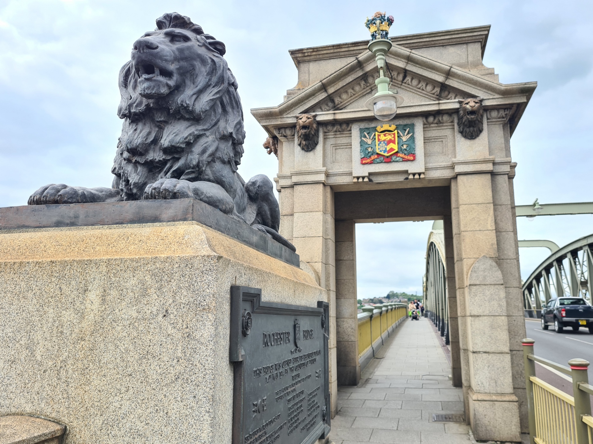 I stopped to peer up at the walls surrounding the castle, then crossed the road to the bridge across the river. One of the lions at it’s end gazed impassively over my head as I touched the final signpost. 30 odd miles done. A good two days. From there, it is just a few minutes walk to Rochester station and a train home.