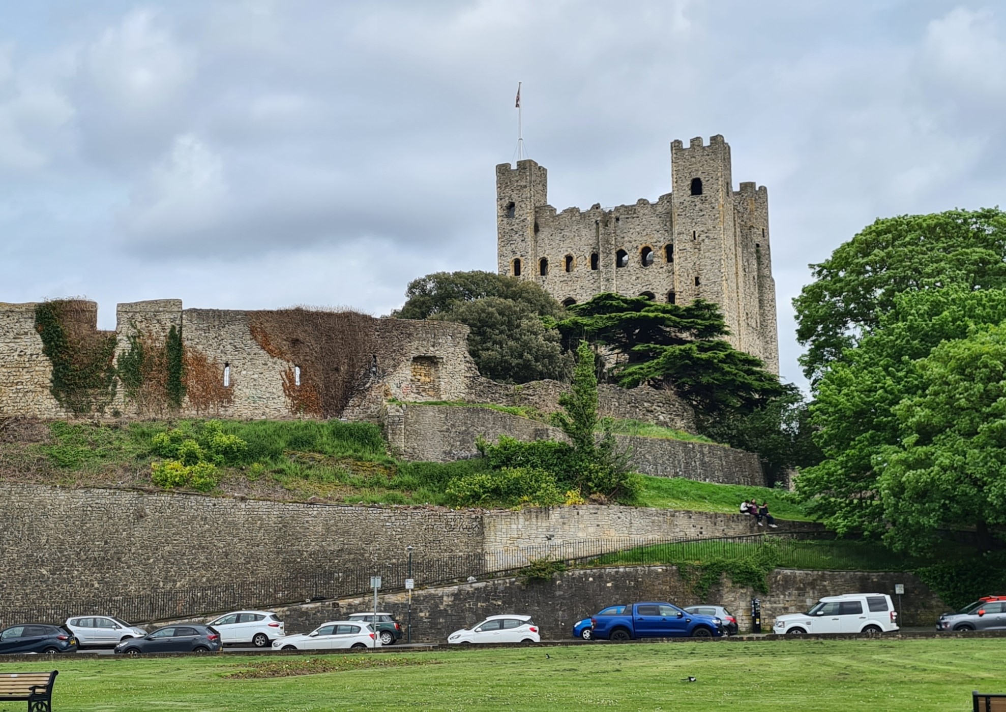 It is a bit of a messy, unsatisfying finish to the Medway Valley Walk. The route goes here, goes there, labours through grubby outskirts, skips round the back of houses, hugs playing fields, tracks a road, skirts newbuild. There are things of interest, and the town has done a decent job of putting many informative noticeboards up to tell a little of the history, but it is really only with the final half mile, with the 12th century keep of Rochester Castle looming overhead to the right, that a sense of purpose and completion is realised, up to that point it is dodging nettles and ensuring the loss of waymarks (why is this so prevalent in towns) doesn’t lead you astray.