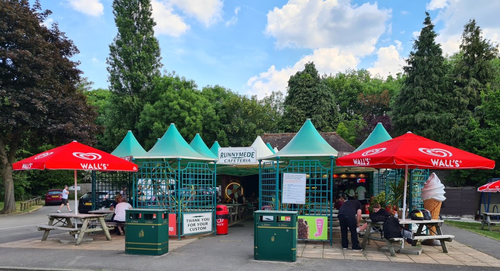 So, how should we, as a nation, mark such an auspicious event. Mrs Three Points of the Compass and I popped into the National Trust cafe at one end of the field for lunch. We tried to ignore the other end of the field, with its immense carpark, fish and chips and ice cream vans. Not surprising that the US had placed their own memorial away from such commercialism, on a hill overlooking the Thames and its momentous meadow.