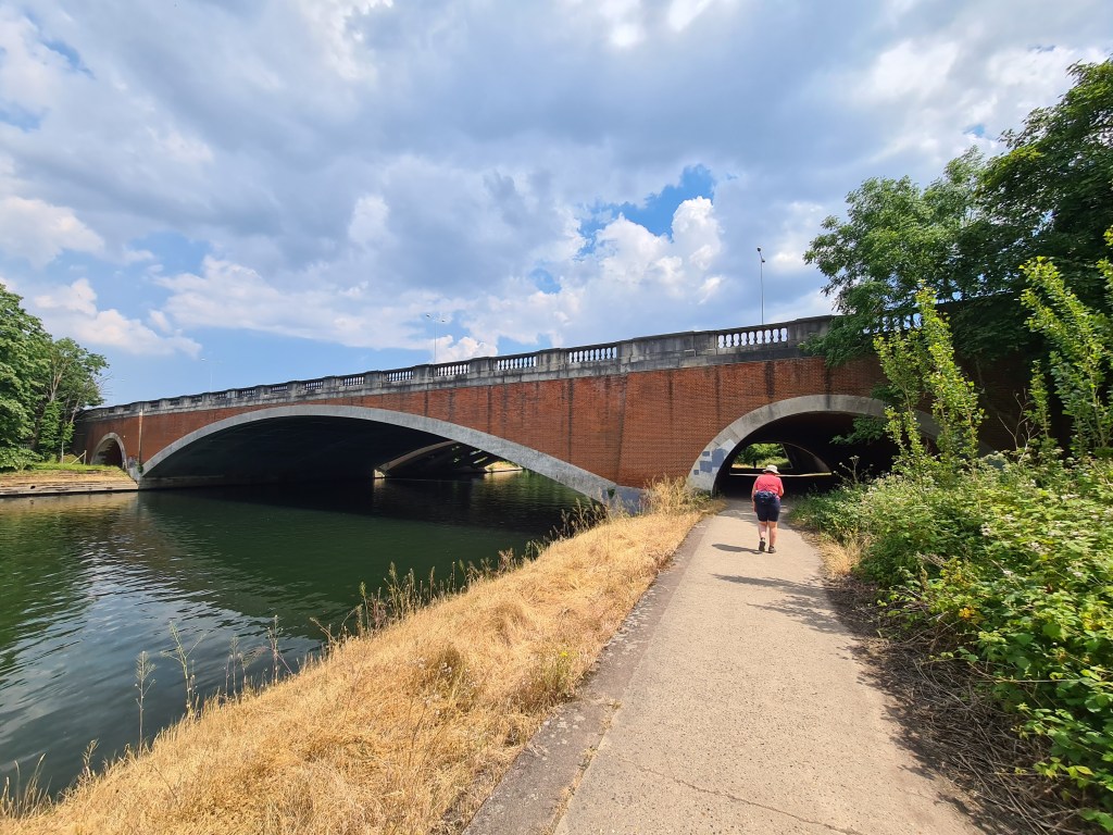 A couple of drops of rain fell as we reached Staines, no more, it didn’t even dampen the ground, the humidity rose a tad, the temperature continued to rise, the miles fell slow. It was hard to appreciate the trail as it became a necessity rather than enjoyment. Even the grass was turning dry and brown.