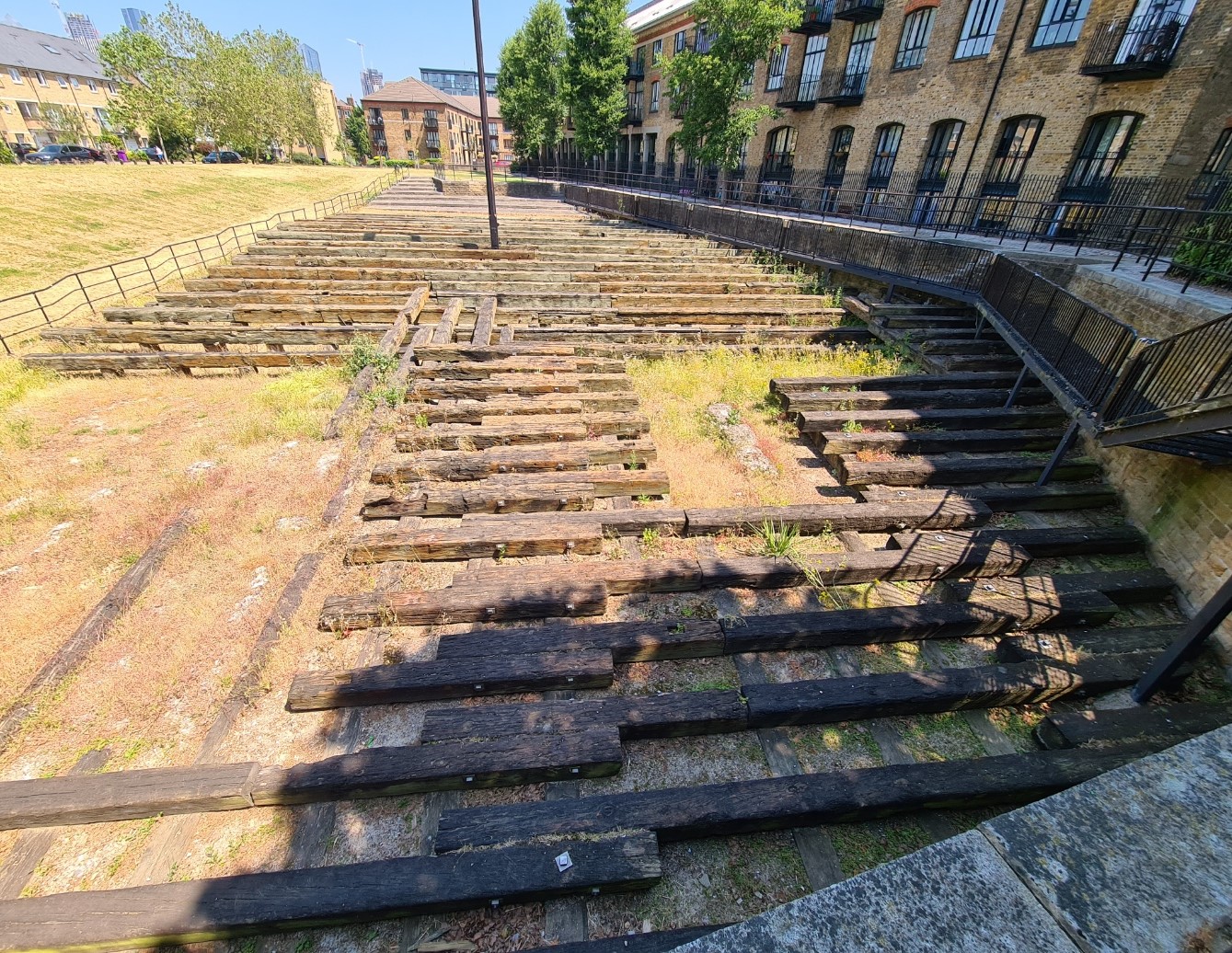 The first part of todays section was enjoyable and interesting while much of the final half was pretty poor. We moved from a day of wharves with surviving remnants of London’s trades and industry on to backstreets and either run down housing or the most desirable of ‘rooms with a view’, or office space, all built on the cleared sites of former industry, trades and generations of families. I was fascinated by one remarkable ship building survivor that remains to be seen, now squeezed in between housing. Rediscovered in 1984 and now pumped full of preservative, it is the launch slipway for Brunel’s Great Eastern. At that time it was the largest ship in the world, and would be for forty years. Six months of which was repeated attempts to get her in the water.