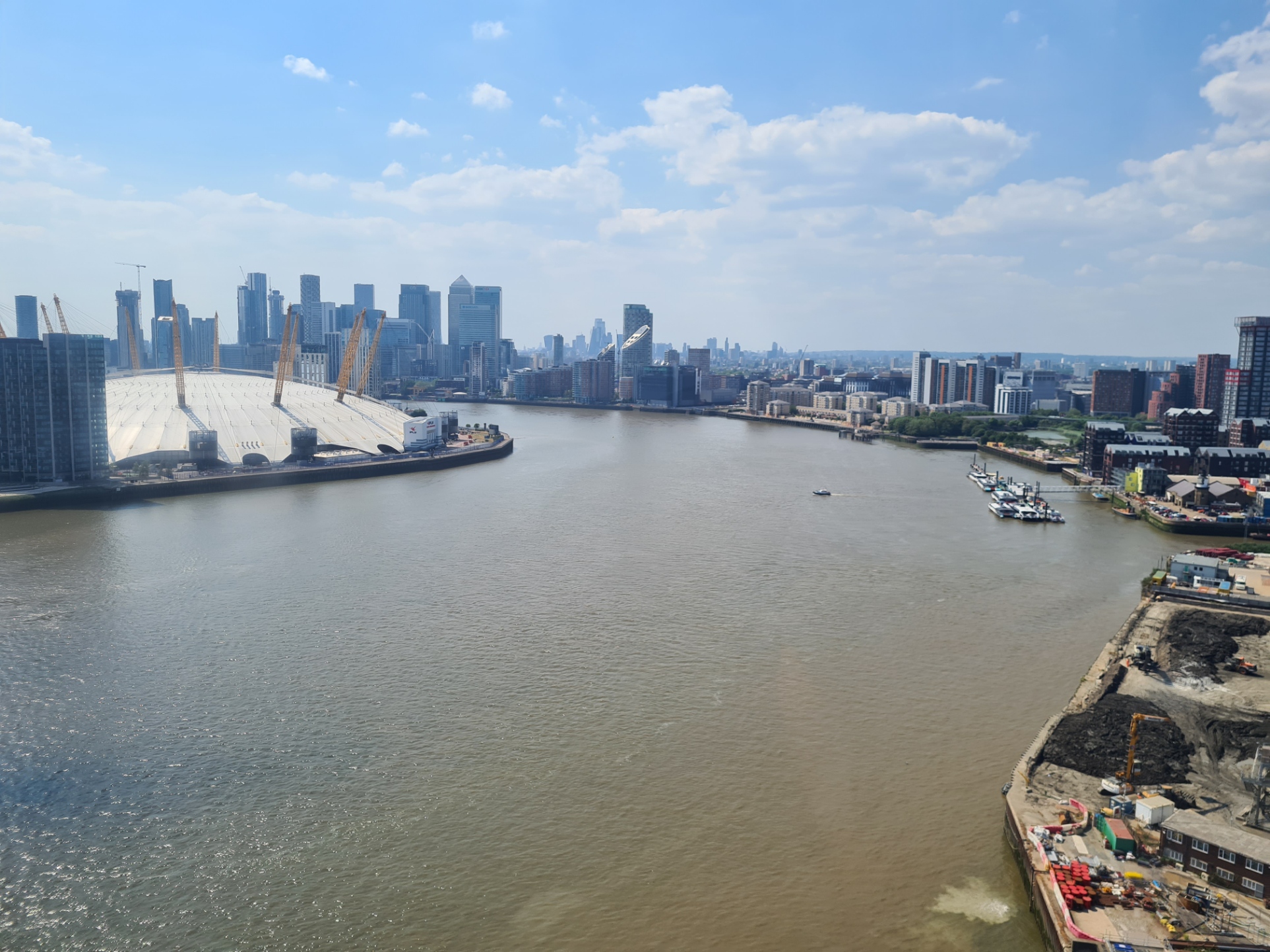 Reaching the Greenwich Peninsula we diverted inland slightly, not to visit the over-hyped O2 Millennium Dome, but to take a ride on the IFS Cable Car over the Thames, enjoying a birds-eye view of ‘our river’. Most travellers, if not its builders and backers, will admit that the aerial way connects ‘nowhere really’ with ‘nowhere really’, but it is still a grand ride. We didn’t even disembark on the other side, remaining in our capsule for a ride back.