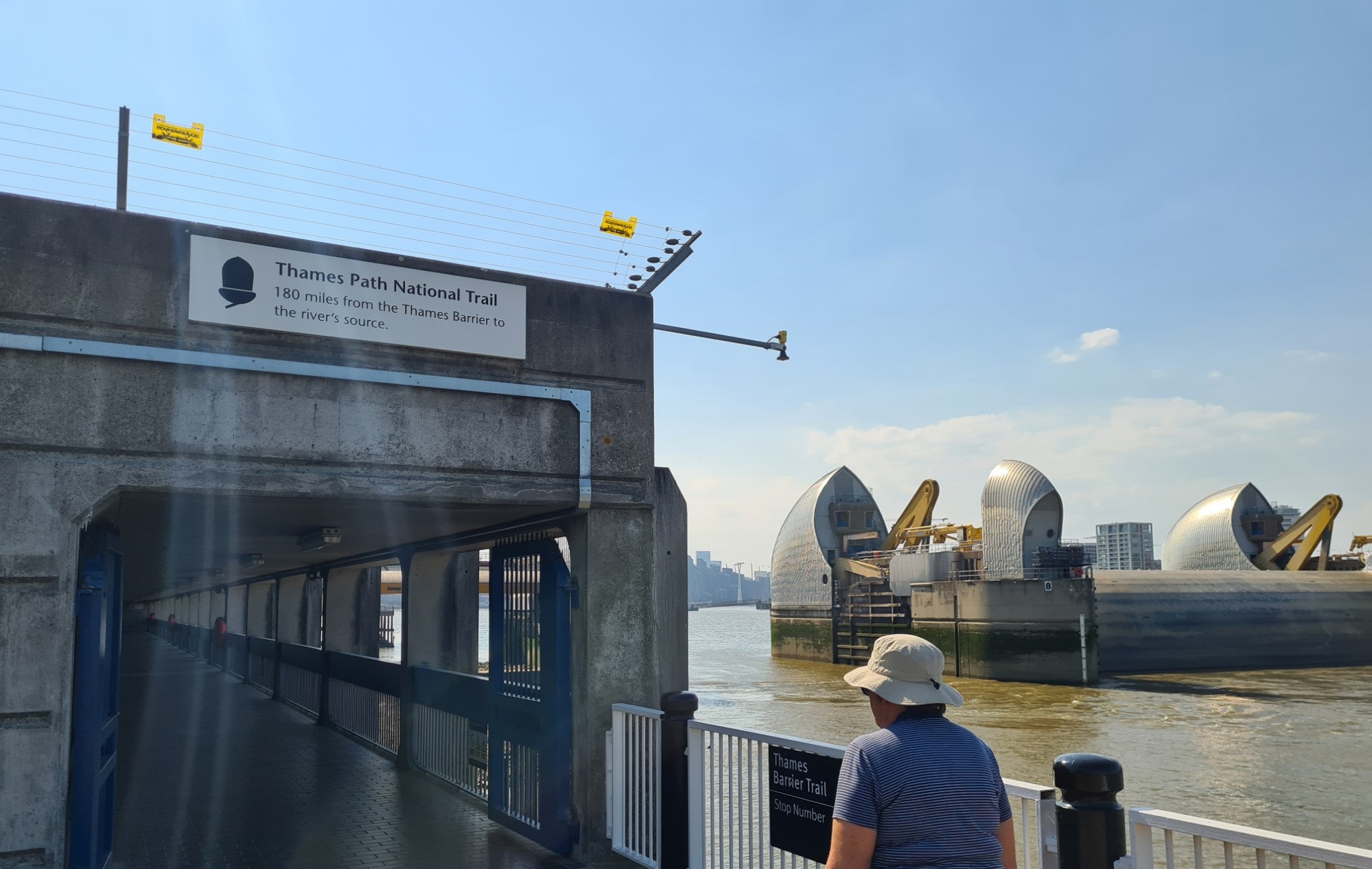 We reached the original end/start of the Thames Path (since 24 July 1996) at the Thames Barrier. I can see why it ended (commenced) here. The Barrier is a remarkable achievement and sight. It is perhaps going too far to refer to it as the eighth wonder of the world, as some have, but it is still a pretty amazing construction.