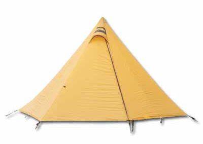 While there are few changes of any real note, the colour coded tie-out near the door had been a long-awaited addition. introduced to the Nigor version, after my particular model. The supporting pole is now “19.5 mm TRX Eco Duralumin aluminum with environmentally friendly anodizing“. I also see that my single door tie back is now replaced by two, definitely required with the slippery siliconised material. The design is a popular one, take a look at the ‘MIER 2-3 person ultralight outdoor camping tent’ and the Black Diamond Mega Light. The Wickiup isn’t far removed from those. As a side note, the Mega Light is a successor of the 1980s Chouinard Pyramid, possibly the first mass produced pyramid tent. This was created by legendary climber and environmentalist Yvon Chouinard, whose company Chouinard Equipment, made the tent. He also created the ethical clothing and outdoor equipment company Patagonia. Chouinard Equipment Co Ltd. was sold off by their brand owners Lost Arrow to it’s employees, who started Black Diamond Equipment, who make the Mega Light. This design of tent has had a bit of a resurgence in recent years, so much so that they now have their own genre, known as ‘Mids’ (from pyramid).