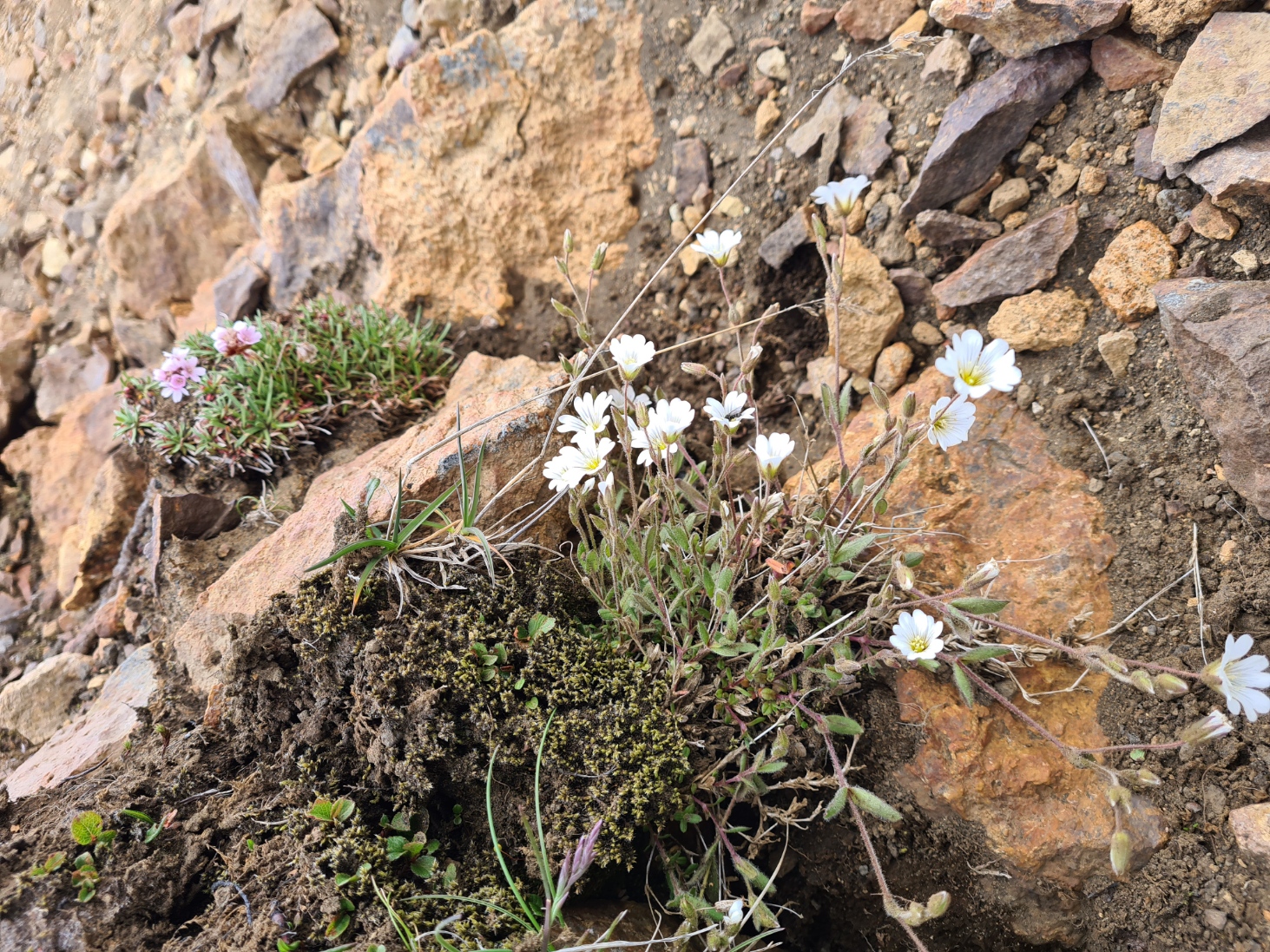 I was now passing the northbounders. I wondered why most of them were pretty silent, if not downright rude, but soon found out why as it was a long long stone clattering descent of Jökultungur toward the rift valley (a climb for those approaching me) where the Álftavatn huts are to be found. It was here that I began to see the first flowers since leaving Landmannalaugar. The pleasant campsite is situated not far from the large Álftavatn Lake [Swan Lake (lake)]. A body of water only present due to the ground sinking when the continental plates separated. My view from the hills above showed the series of parallel rift valleys stretching to it’s west.