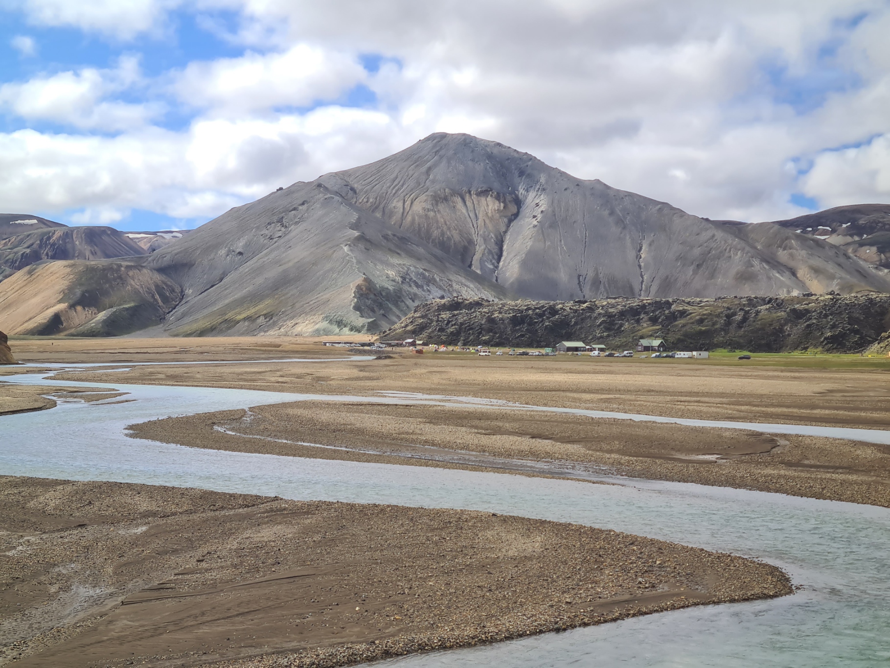 Landmannalaugar is quite a popular destination for the more intrepid tourist, located in Iceland’s southern Highlands. Spread out across the site and walking in the nearby hills, there were probably a couple of hundred day and trail visitors, exploring the rhyolite mountains, geothermal hot springs and lava fields of the Fjallabak Nature Reserve. There are huts (pre-booked months in advance) and a campsite here, also a w/c, though there is a charge of 500 IKr to use the latter (about three quid).