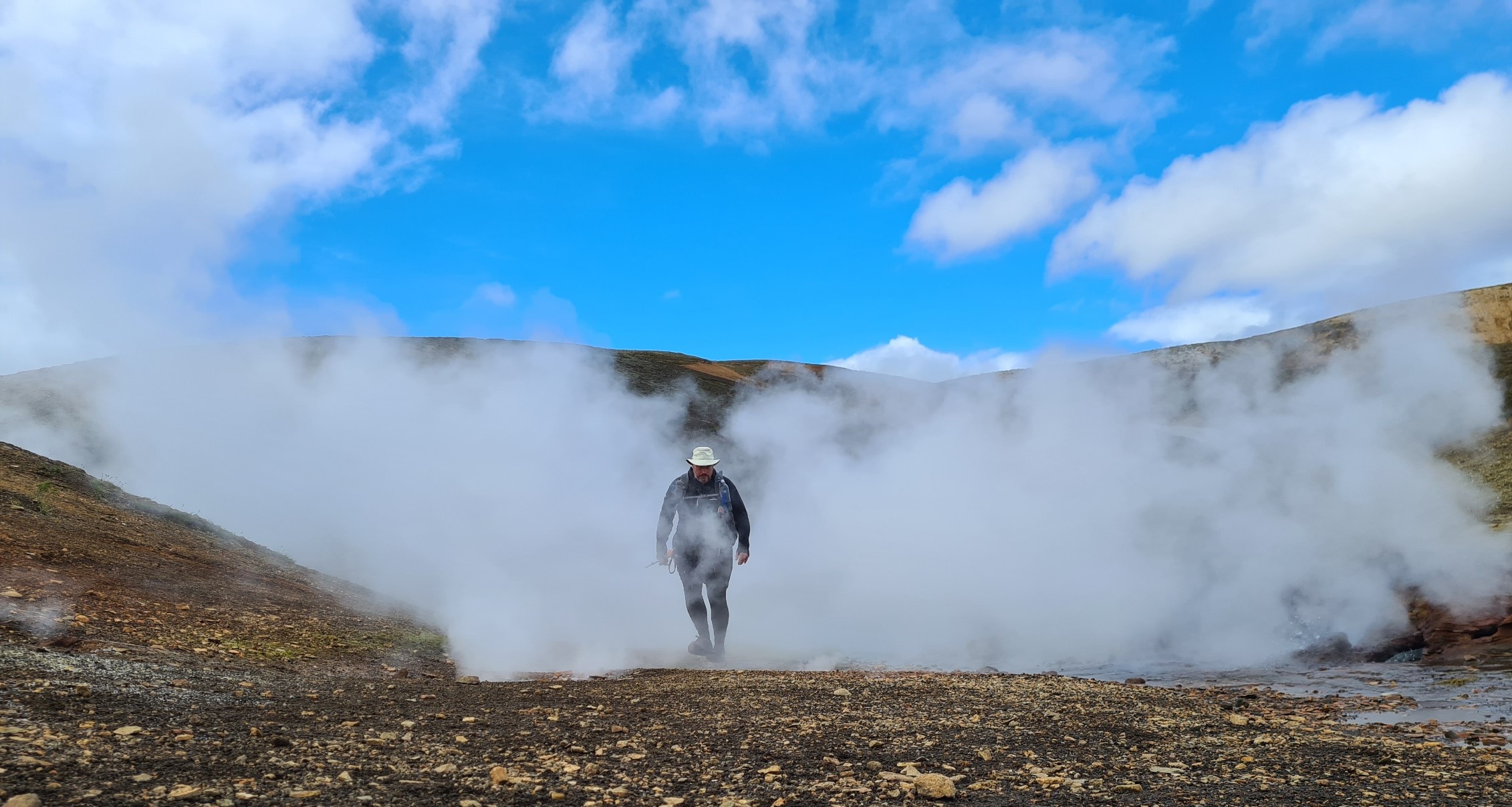 I have visited many a volcano in the past, but on how many long-distance trails had I witnessed boiling water and steam being strongly ejected from the earth’s crust, I can think of none.