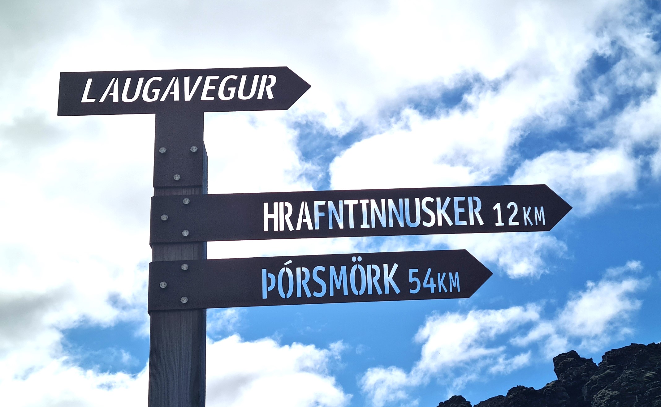 Packs were extricated from the bus and I left the driver forlornly looking at the rear bumper hanging off the back of his vehicle. I briefly explored the site though I needed nothing. I visited the famous and extraordinarily well-equipped Mountain Mall, poked around but didn’t buy anything, filled up with water, chatted to the warden- “how is the weather“- “it’s supposed to be fine, but…” shrug of the shoulders “…this is Iceland, it could be anything“. Then, it was time to hit the trail. From here, it would be four days and around 54km to the glacial valley and ridge of Þórsmörk (Thor’s Forest) where I had a choice of three huts to end at, depending on weather conditions and whether I was going to tack on the 25km Fimmvörðuháls Trail. I would decide on that when I got there.