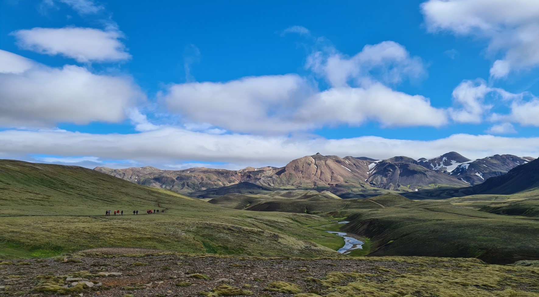 The trail walks through and toward impressive rock formations. Most caused by volcanic activity rather than erosion. One dramatic hill, Einhyrningur, looks distinctly like a rhino’s head in profile. The author of a guide on the trail’s geology comments: “the diligent observer will potentially see two or three dragons circling the peak”.