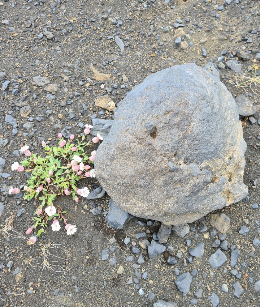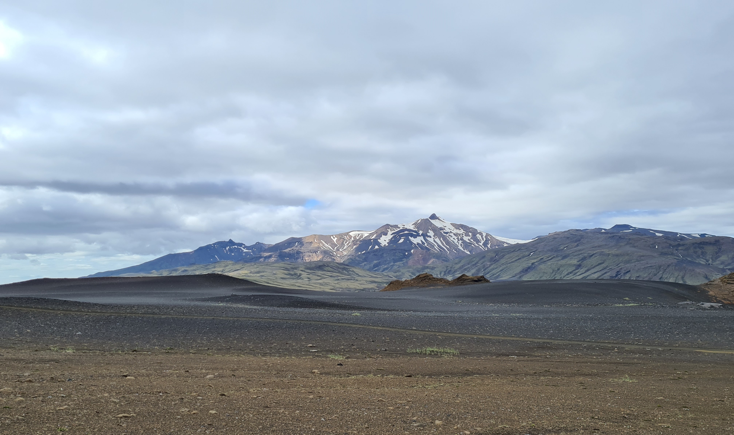 Having crossed Bláfjallakvísl it was back into the extensive black ash desert that so many people say they dislike. Why I cannot fathom. It is a fascinating environment. You will read that it is devoid of vegetation, it isn’t, small clumps of flowers hang on in many a place. Lichens and mosses create a bright green coloration to distant hills. I would guess that when the wind is whipping across it’s surface, it might be a blinding, skin shredding experience, but it wasn’t when I crossed it. Thousands of lava bombs have peppered its surface and you can spend hour after hour working out the different types, rock consistency and considering how violent it must have been at the time they flew through the air to land here.