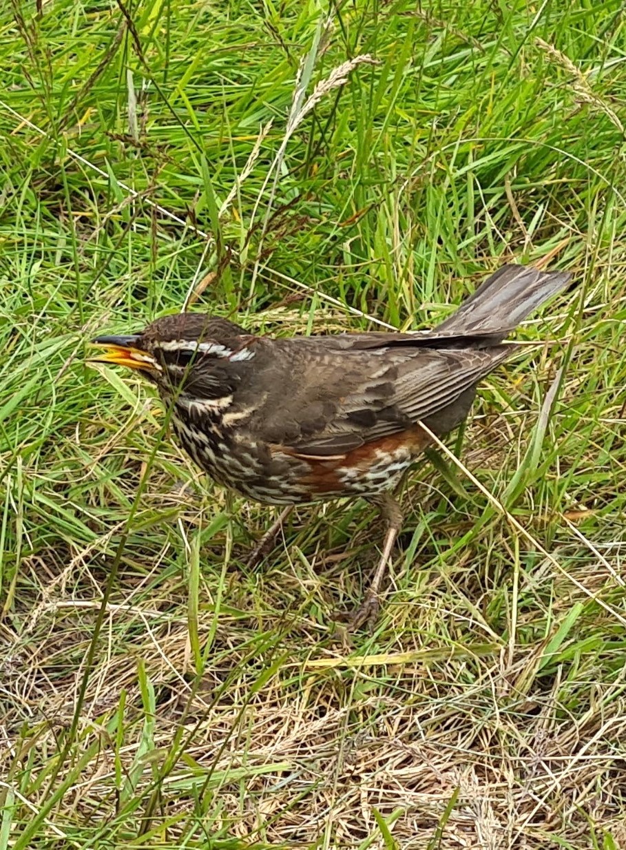 It was then turn left on to the rough road and walk into the dust cloud, added to by occasional 4×4’s passing me. It was a 1.5km walk to the Básar campsite. This is obviously a popular place for car campers but they also have plenty of space for backpackers. I paid my fee at the little camp’s shop, then it was a roughly 1km walk to a pitch amongst the trees, picking up three litres of water on the way. I was pitching on grass for a change! The tent was up by 16.15 and I celebrated having completed the Laugavegur with the remainder of my (now stale) cinnamon buns and a two-bag mug of tea. I know how to celebrate! A confiding and handsome Redwing joined me for crumbs. Could I ask for more? I was pitched just a few metres from the start of the Fimmvörðuháls trail. More adventures tomorrow.
