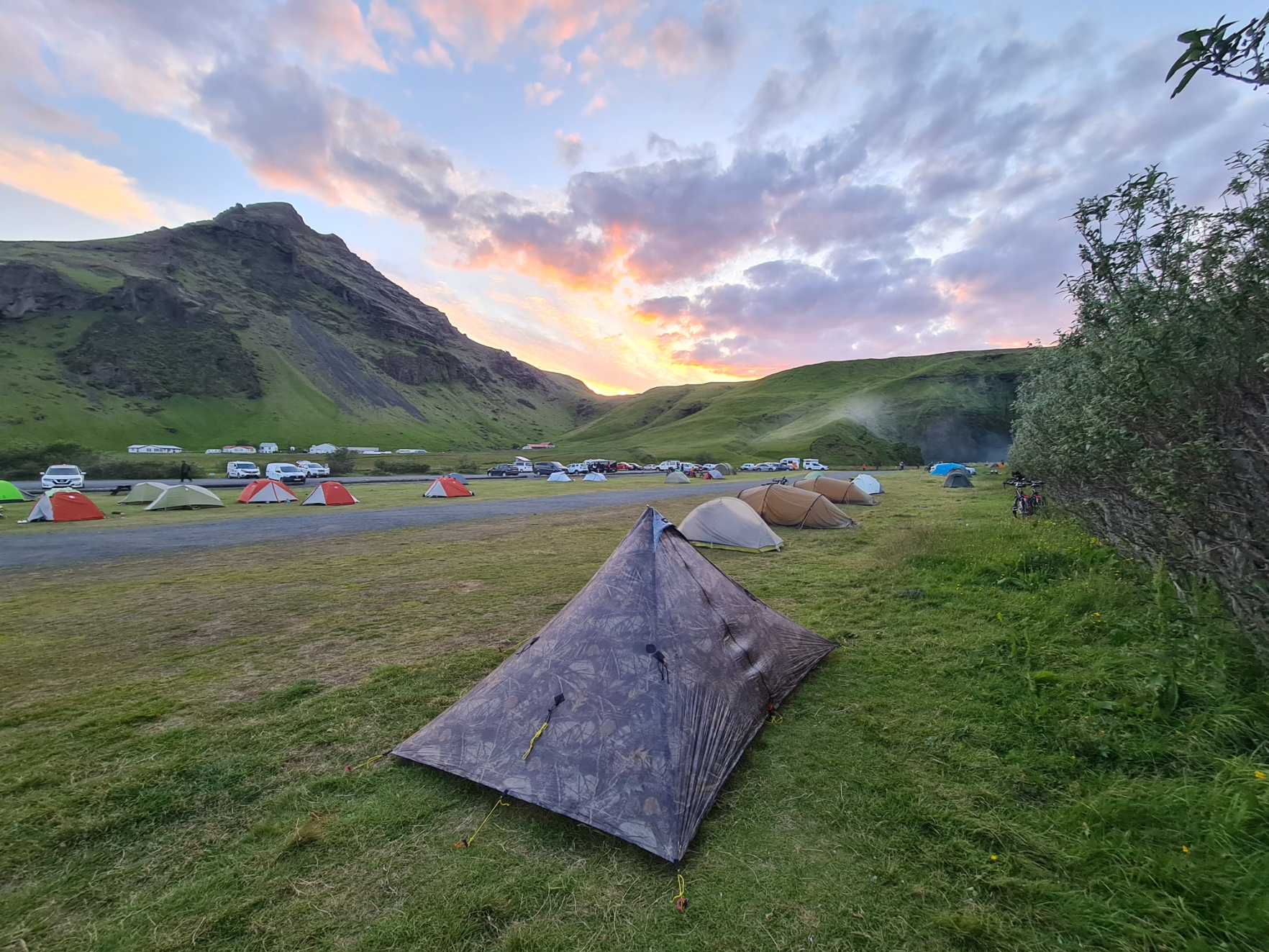 My pitch at Básar was sheltered and quiet. There was one late arrival in the evening. A pair with a trailer tent but they were respectful and extraordinarily quiet and I barely noticed them. I was asleep early and for the first time in Iceland, set an alarm on my phone. As it was, I was awake before it sounded. After a mug of tea and wiping the condensation from the Duomid, I left camp at 07.15.