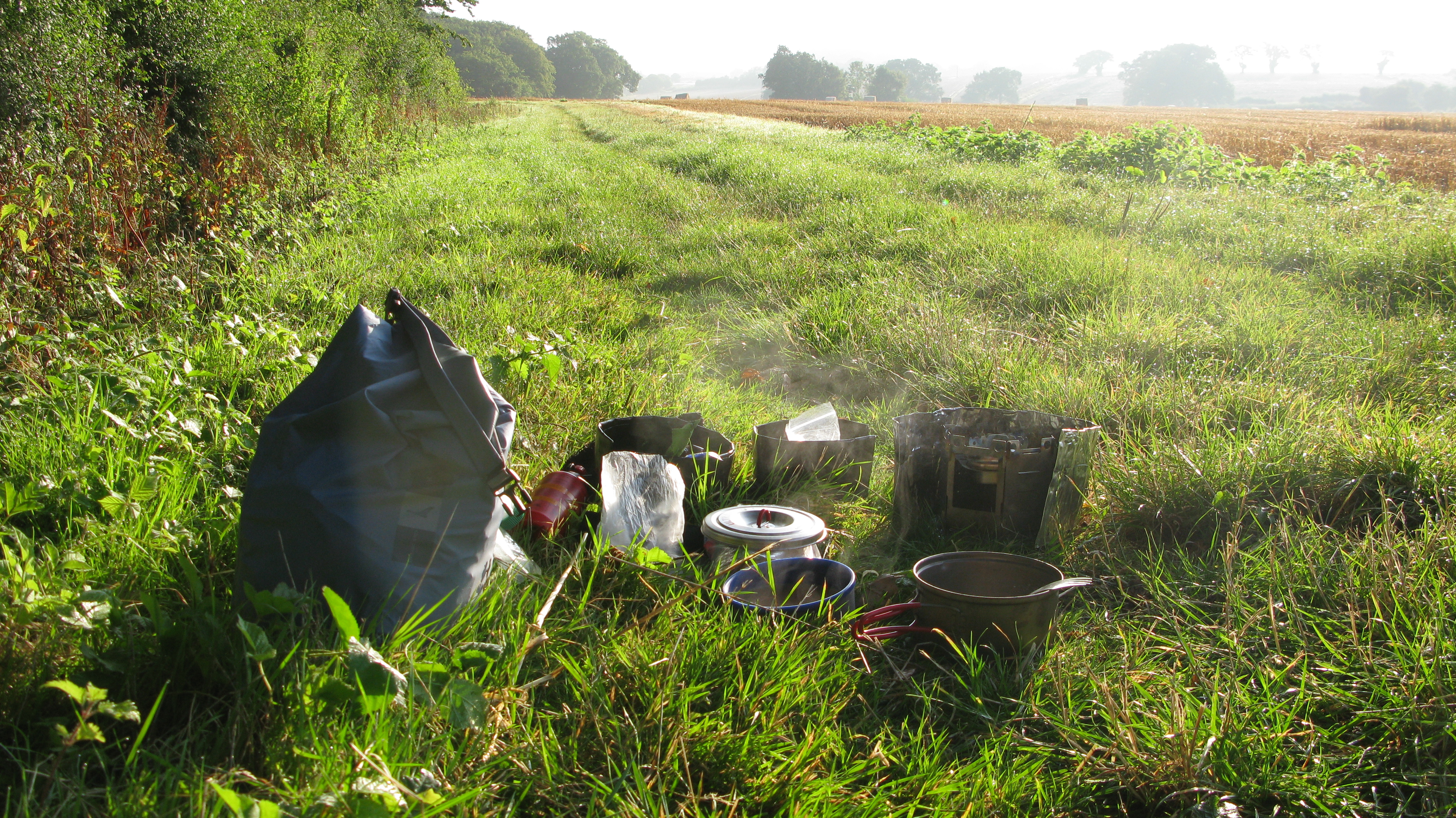Japanese manufacturer Evernew released their Titanium Alcohol Stove, EBY254, in 2010 but it wasn’t until 2013/4 that Three Points of the Compass purchased one. I first used it on a brief three day backpack of Norfolk’s Boudicca Way in 2014 and it has continued to occasionally come along on longer day walks or two/three day excursions in the intervening years. It is light, compact, trouble free, robust and simply works. It isn’t cheap though. As I write this, Amazon have it at £41.39, and Ultralight Outdoor Gear are selling it at £54.99. Look around and you can find it cheaper. There are various small aspects of this stove that set it apart from much cheaper products and almost justify it’s cost. The Evernew stove is also available in the Evernew Ti Stove DX Set, EBY255. This quite expensive set combines the stove with a titanium ‘power plate’, windshield and pot support, (available by itself as EBY257), that can also be used with solid fuel tabs or act as a little twig stove.