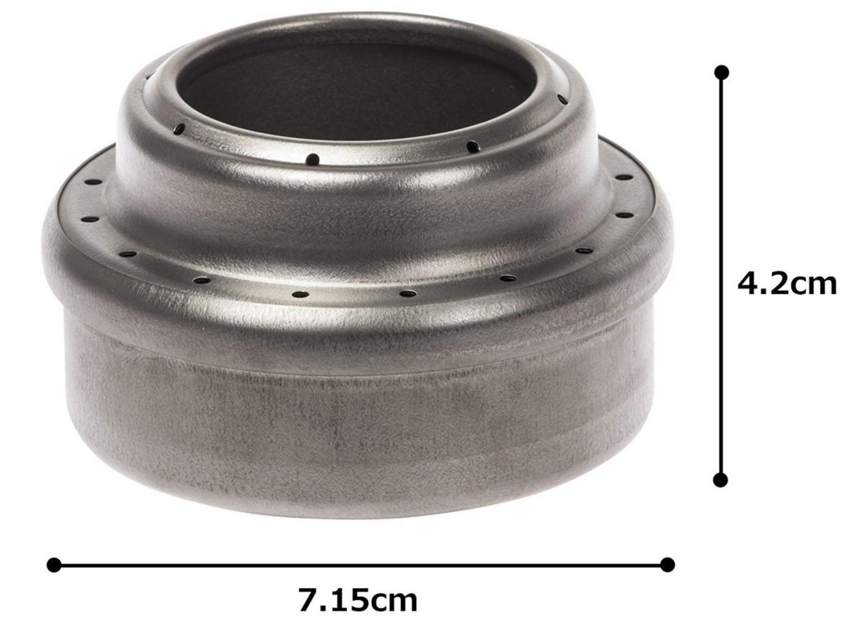 I probably have to define what the difference is between a burner and a stove. A burner burns fuel but cannot perform by itself. It requires something else to support a pot or pan. A stove both burns fuel and supports a pot or pan. The Evernew EBY254 acts either as a burner or as a stove. It was specifically developed to get the most out of low BTU alcohol fuels. It has a lot of jets and burns just about as hot as an alcohol burner can. You can see that it has two rings of holes. Eight around the top rim, and sixteen around a lower rim. If it is treated as a burner and a pan is suspended above, it will burn from all twenty four jets and boil water promptly, well, as prompt as an alcohol stove is capable of. It will burn through fuel very quickly in this manner. If it is treated as a stove, a pot/pan can be rested directly on top of it. This then chokes off the top jets, and a flame is only created from the bottom jets, creating as close to a simmer as it is possible to get and greatly extending the burn time.