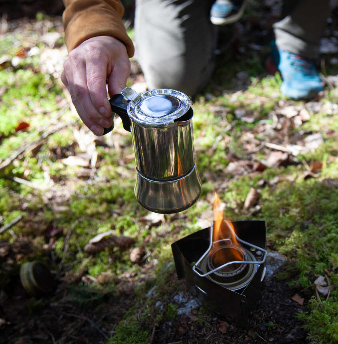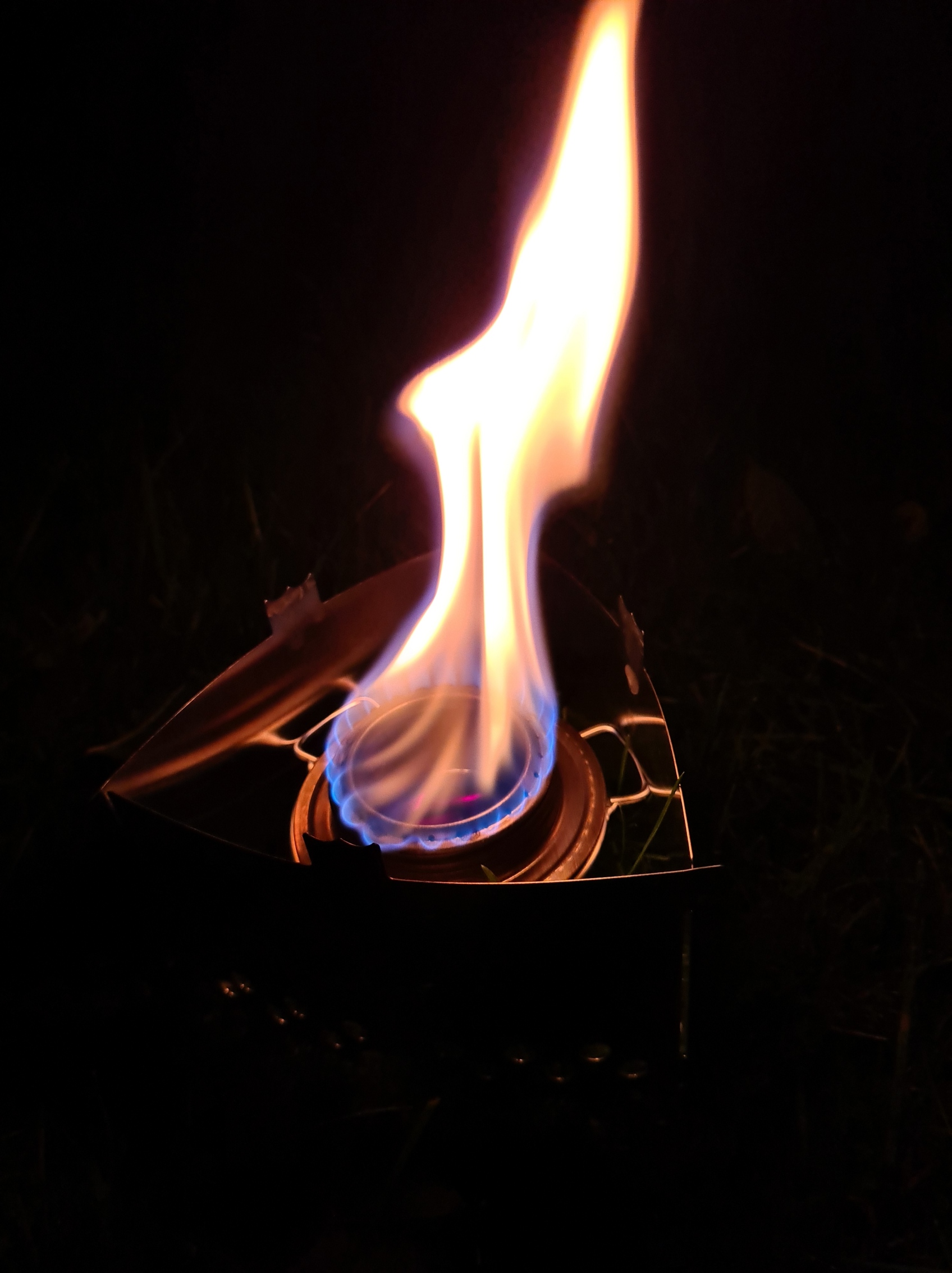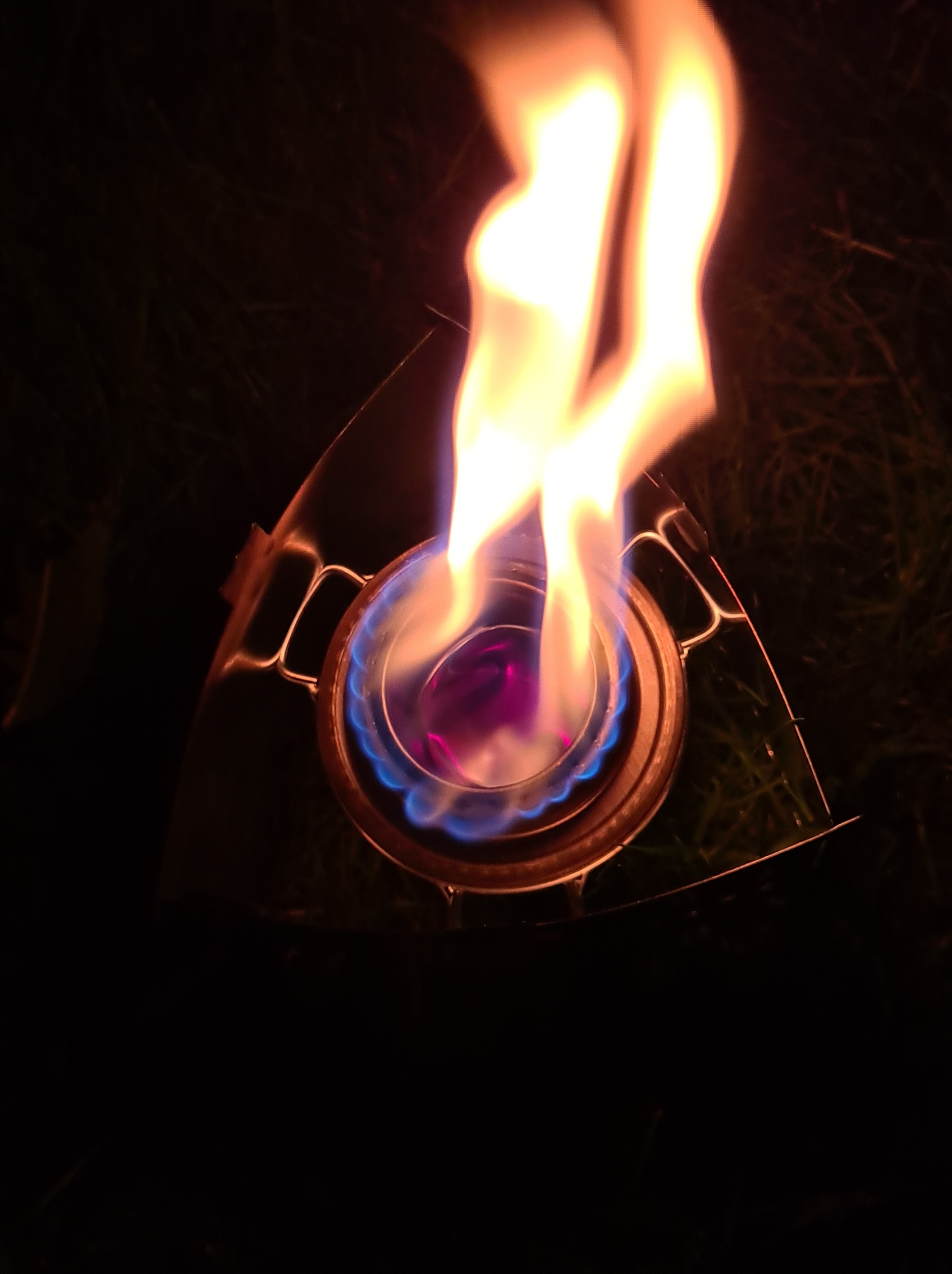 I use a Trangia gel burner lined with ‘fire rope’ purchased from Canadian Tire. This easy and inexpensive DIY modification is shown on several YouTube videos, and is used by many British bushcrafters in the cooker unit for the Crusader cup.