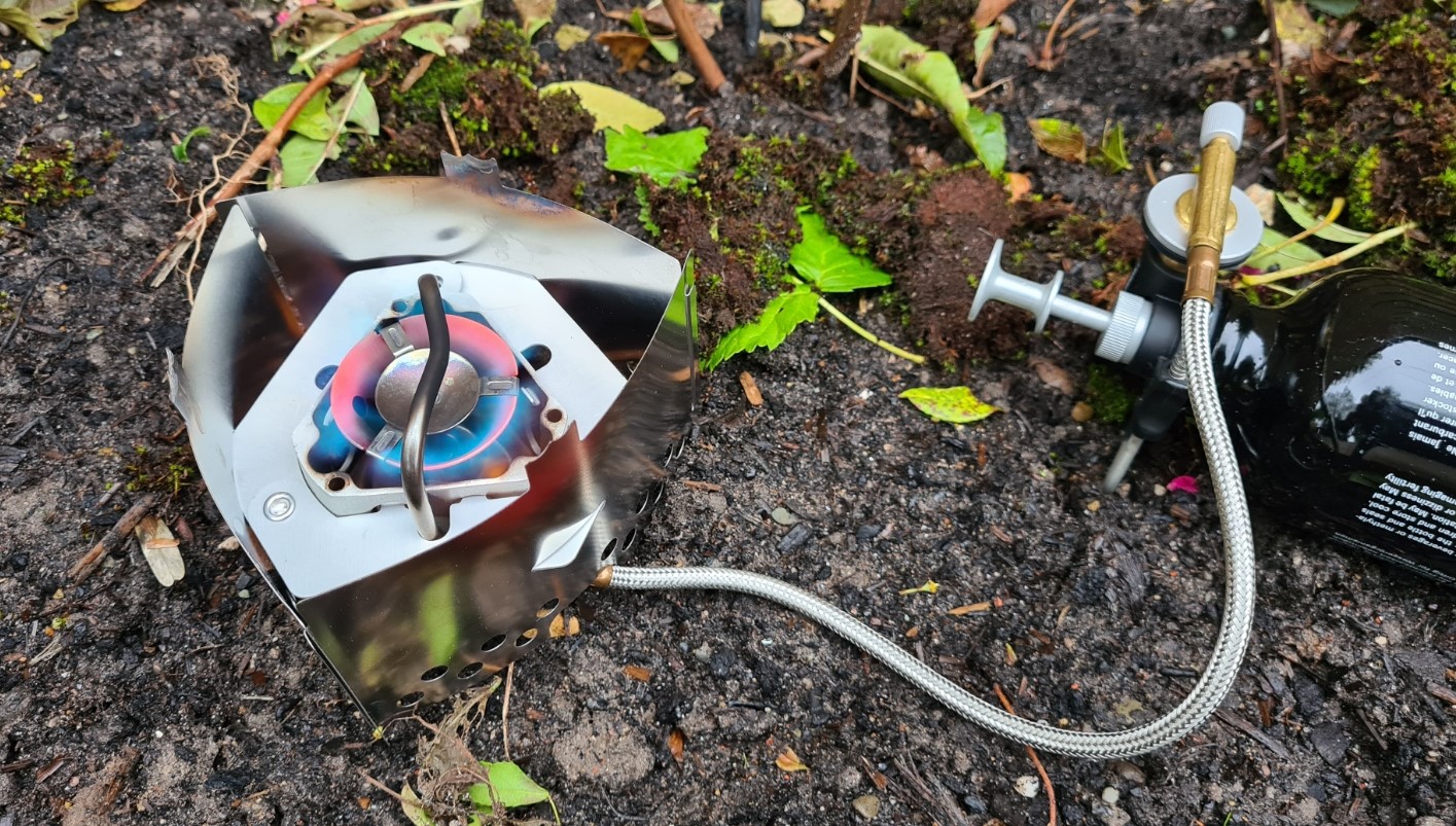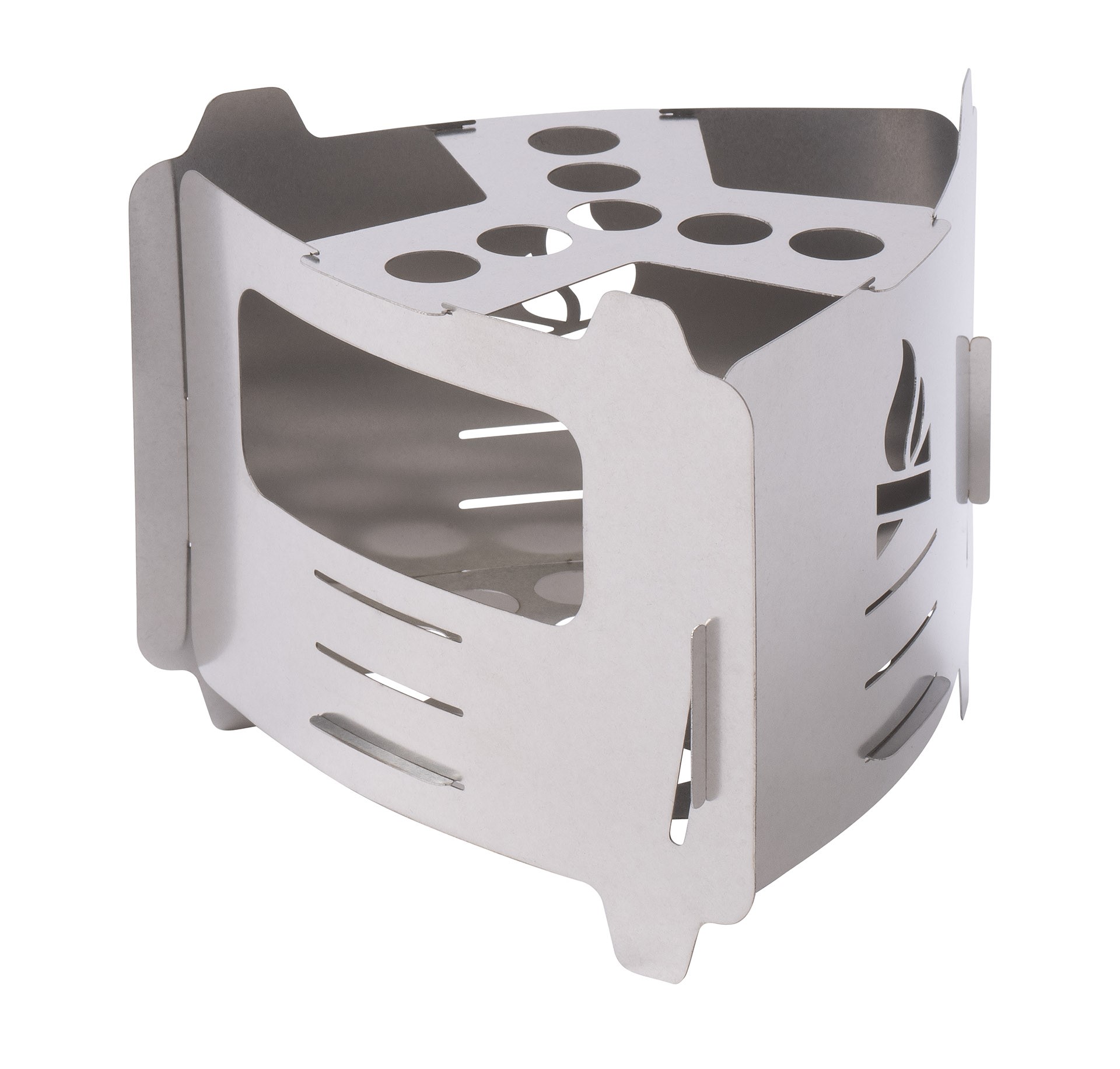 Many remote feed burners will also fit, with their fuel hose exiting from a gap at the base of the stove. My multi-fuel Edelrid Hexon makes for a very good pairing with the Triangle. Various other burners could be used with the Triangle, provided they fit the 71.45mm internal diameter of the central support, though not all burners will. My 71mm diameter Evernew Titanium stove is too narrow and slips through. Alternatively, you can leave out the burner support from the Triangle and stand a burner on the ground in the middle, using the three-sided remainder as a simple windshield.