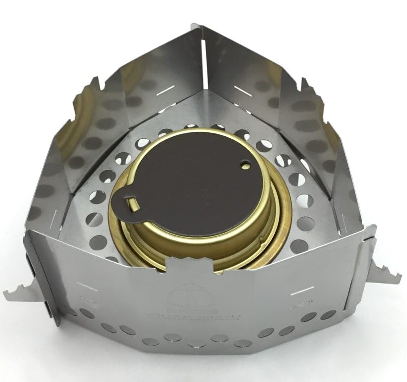 The Trangia Triangle is made from stainless steel and rather than being a true stand-alone stove, works as a pot support and also a windshield to a burner supported inside, unlike the aluminium pot stand and windshield included with the Trangia Mini and Micro cook sets that do little to dissuade any errant breezes. While an extra windshield for the Triangle is not necessarily a requirement, using an additional windshield will go a long way to improving performance. However I have found that the Triangle by itself, and positioning a pack or sit pad, or using natural barriers; rocks etc., has always been sufficient.