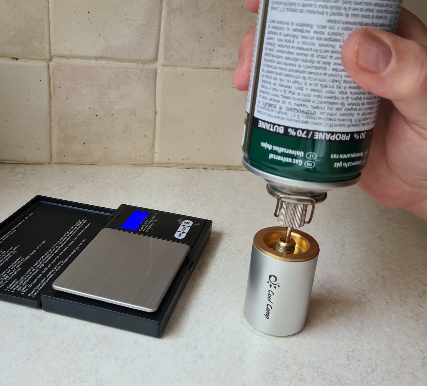 Refilling the canister is easy enough provided care is taken and an appropriate adapter used. A set of accurate digital scales is vital to this process. The Cool Camp gas canister has a maximum capacity of 10g of fuel and this should not be exceeded. I have discussed adapters and the process of transferring gas from canister to canister before in three dedicated posts. An adapter such as those made by G-Works are the best tool for the job and while there are cheaper versions of these, the G-Works Gas Saver Plus is probably the best constructed one available. Soto also make a little Fill Adapter (OD-TRC) for refilling their lighters from a lindal valve canister. This can also be used to fill the little gas canister on the Cool Camp candle.