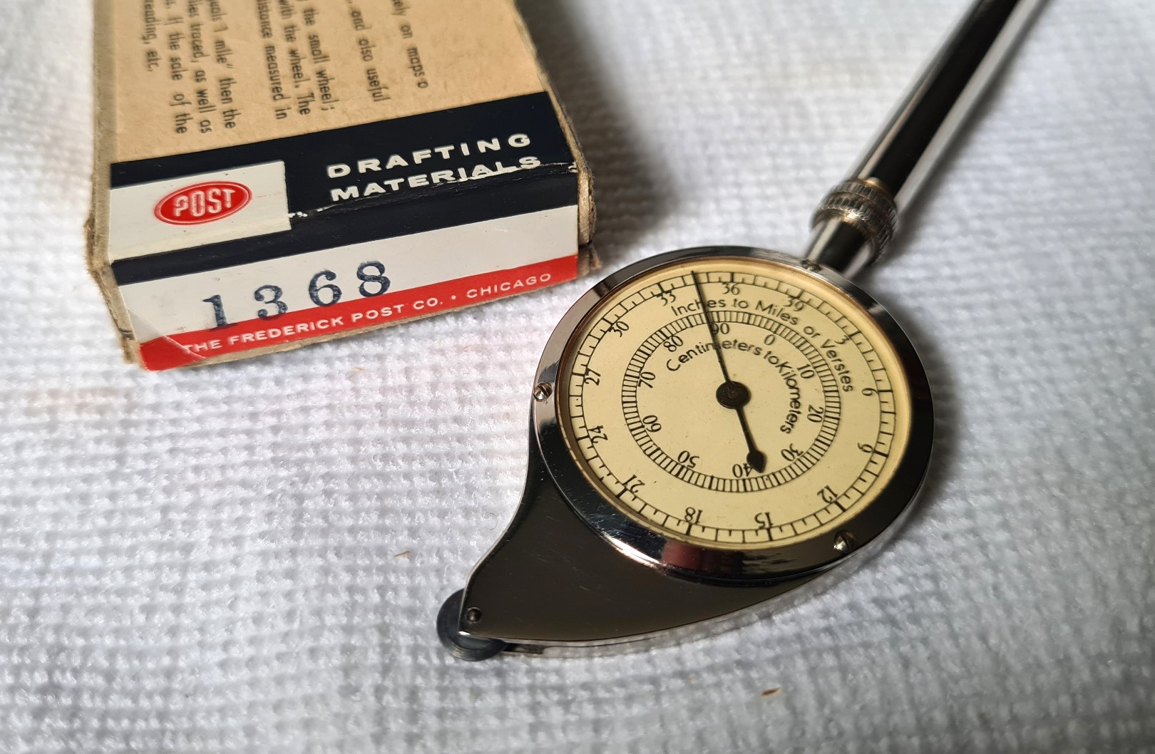 The Frederick Post model 1368 is a good map measure. It is well made and has a smooth operation and the trailing tracking wheel enables it to easily follow sinuosity on a map. That said, the scales are limited in practicality and it is little more than a historical artefact today. Though not rare, few of these measures survive today, however that may be more due to the locking screw on the handle being lost rather than any fault in manufacture.