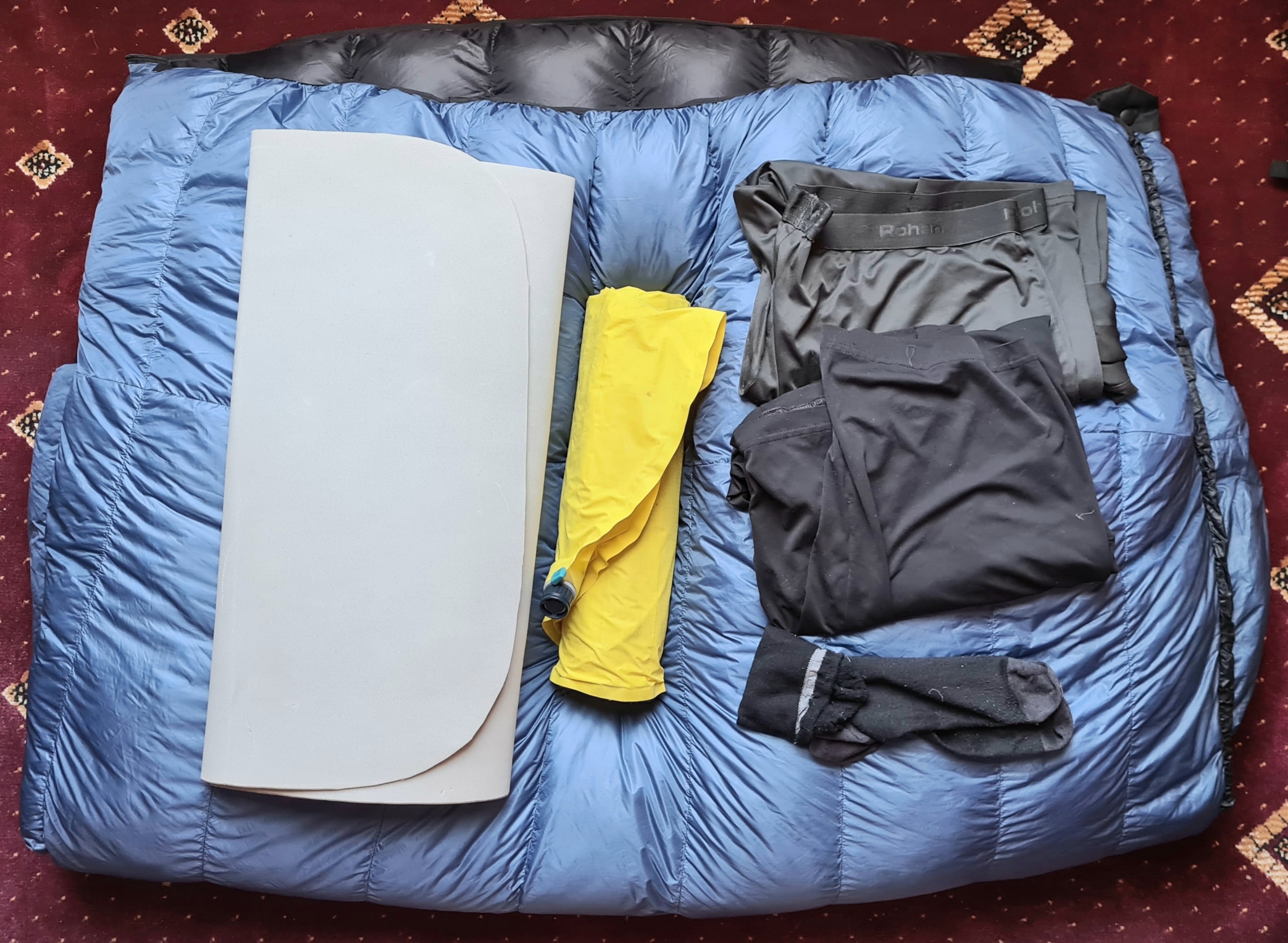 In addition to these synthetic pieces of clothing, I have used merino sleep layers in the past and will likely use them again. Merino, of course, has an excellent no-stink quality that most synthetics lack. However merino baselayers can be surprisingly heavy and the lightest gsm merino materials annoyingly lack durability. I have worn very light silk baselayers in the past which were good but have never found black, grey or ‘earth’ coloured silk layers and the usual lighter toned silk layers quickly look a bit grubby, hence my settling on light synthetic sleeping clothes and accepting the need to wash them more frequently.