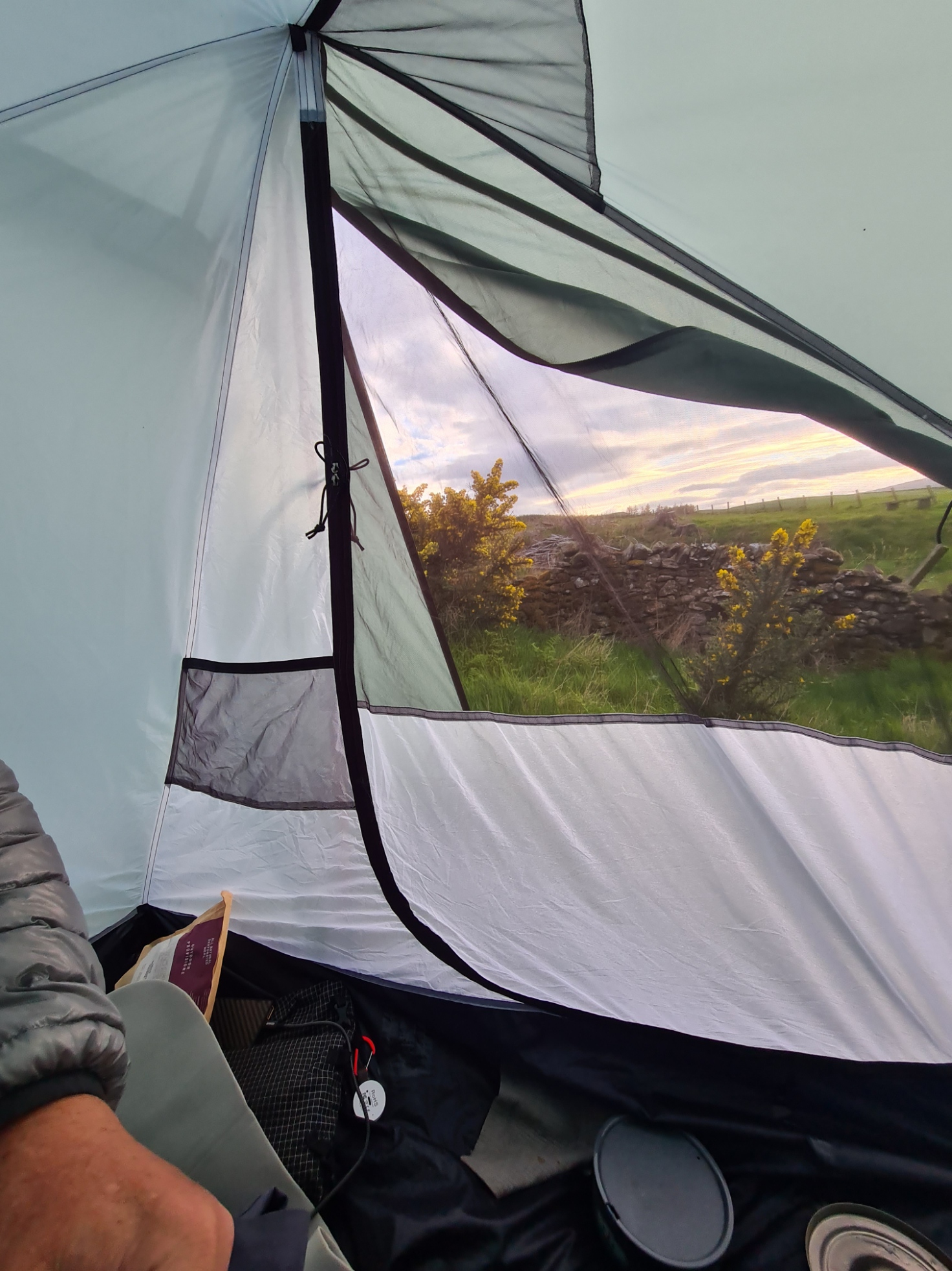 Meeting you at the camping site along Borders Abbeys Way was a delightful surprise! I vividly recall snapping a photo of your unique tent, marveling at its intriguing geometry.