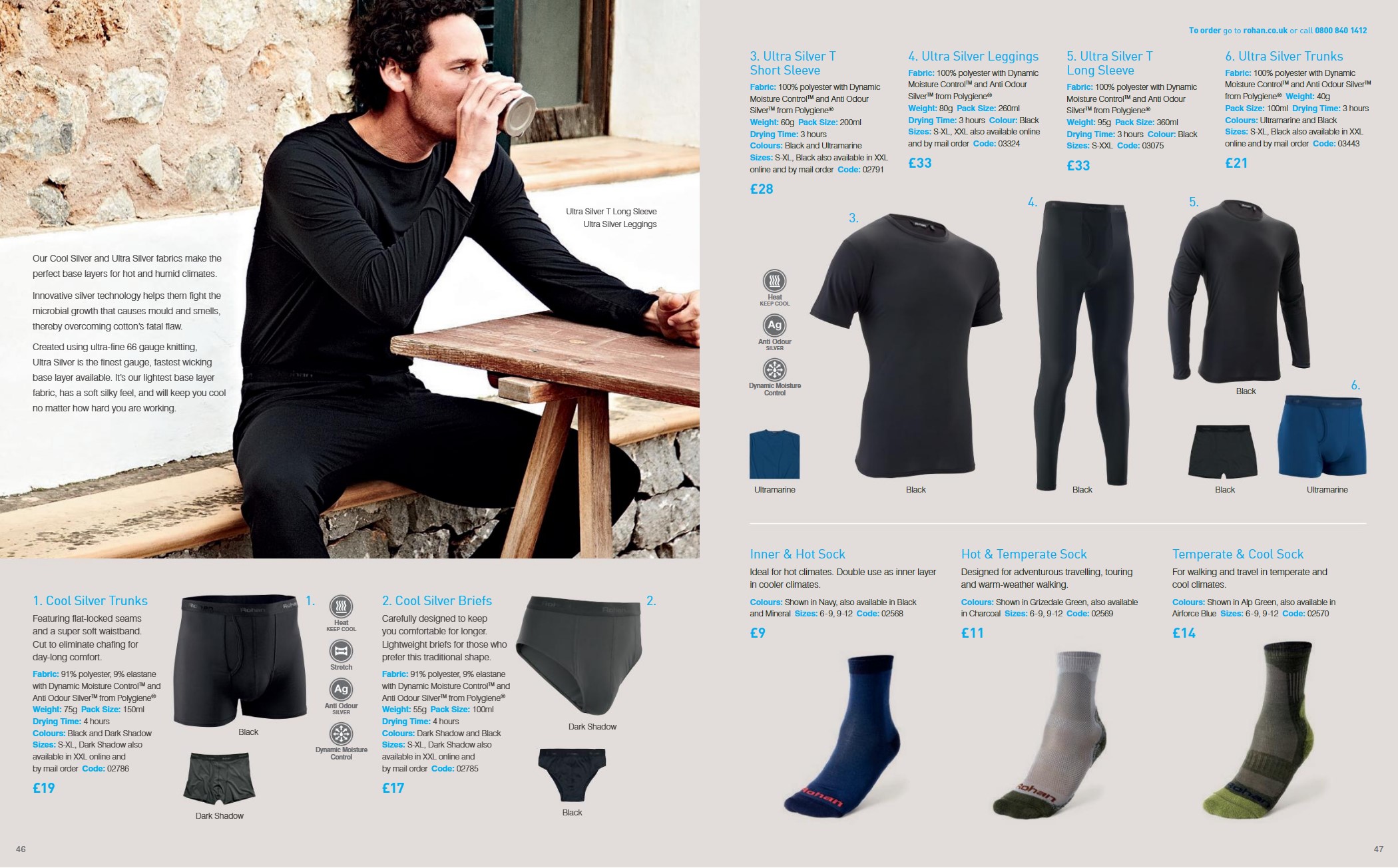 Both top and leggings came from Rohan’s Ultra baselayer range, are silver impregnated and feel similar to lightweight silk clothing. The theory behind the silver is that it keeps down the smell resulting from bacteria but both items of clothing get as whiffy as any other synthetic clothing after a few days. They may take longer to build up a smell than comparable items of clothing, I am not sure. When I purchased these it was only after extensive searching for the lightest and most durable clothing I could find. My top is made of 100% polyamide (probably nylon) though I note the 2014 catalogue specifies polyester. The bottoms are 100% polyester. Both are really light pieces of clothing and the XL top weighs just 85g and the XL bottoms 109g.