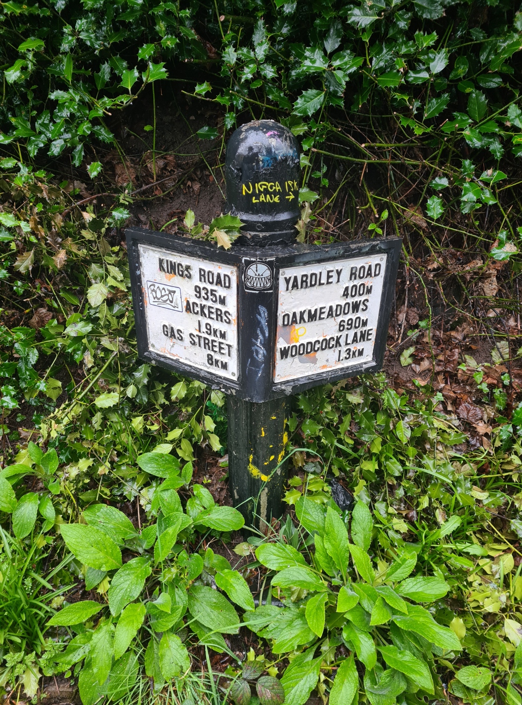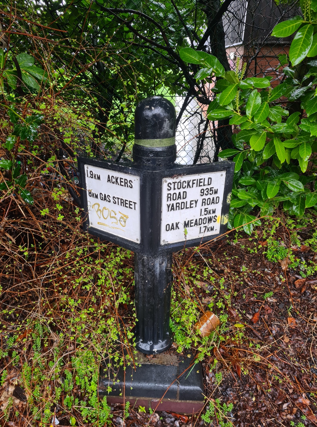 Attempts had been made to create a canal walk into Birmingham and smart new signposts had been erected. A degree more thought needed to go into them. Some were pristine, some unpainted, others unfinished, still others subsequently painted by the taggers. More importantly, the distances shown on them were doubtful. Three showed the same distance to Birmingham’s Gas Street basin, where my walk would end.