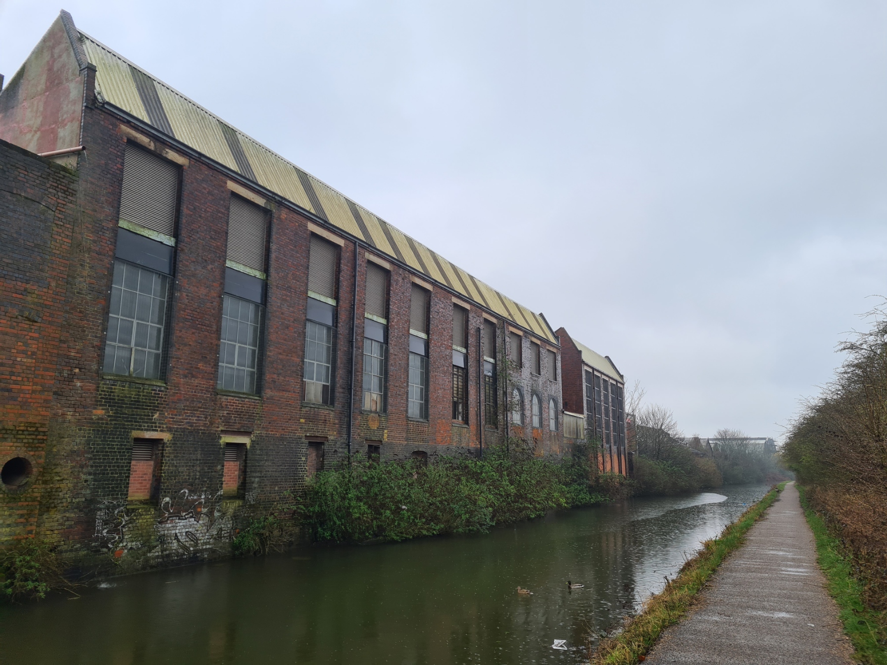 I could tell I was nearer to Birmingham as the air was occasionally full of the sound of planes taking off from Birmingham International Airport. It became steadily more urban. Old crumbling canalside industrial buildings with boarded up and now unused covered wharves, giving way to smarter buildings, that had no relationship with the canal other than location.