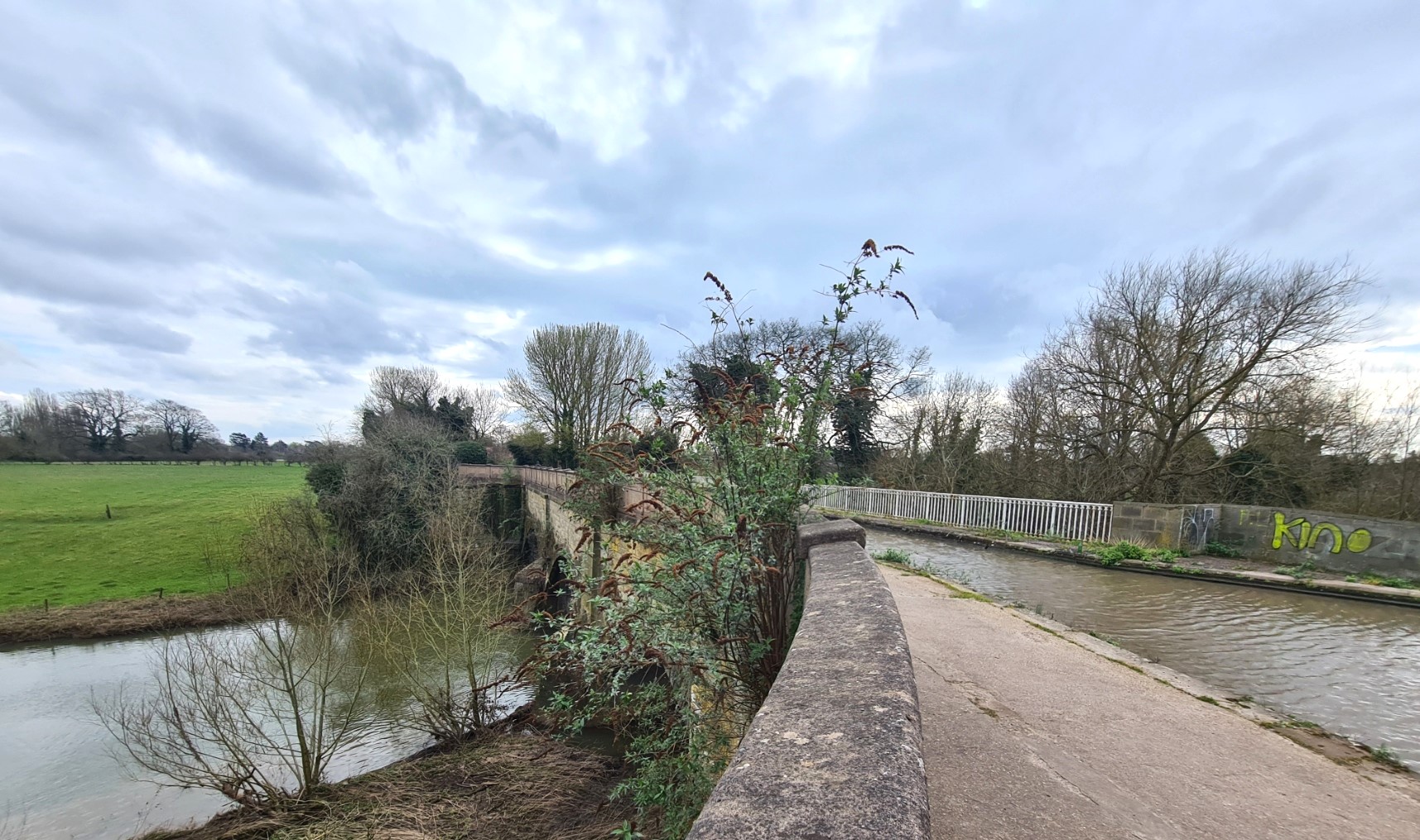 Back on the towpath, the canal made for easy and pleasant walking. The fishermen I had chatted to earlier in the day had told me this was a good spot for large carp. They are so large as the people living adjacent to the canal throw food to them from their windows. Further on I crossed the river Avon, nine metres below, via a three arched stone aqueduct, opened in 1800. I was now on what was originally called the Warwick and Napton Canal, before it was subsumed into the Grand Union. Such was the importance of this route between London and the Midlands that when it opened, the price of coal halved overnight due to the ease of transport that the canal offered.