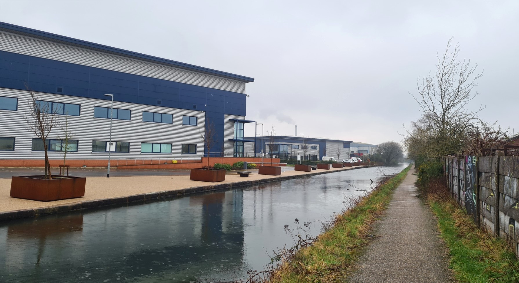 Smart industrial units have been built on the far side of the canal, distanced from the graffitists on this side