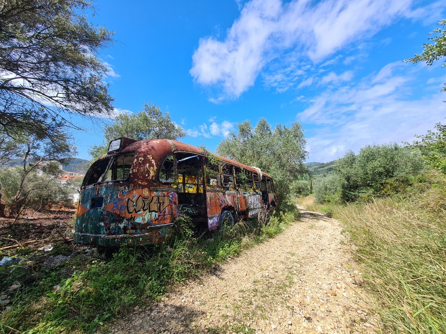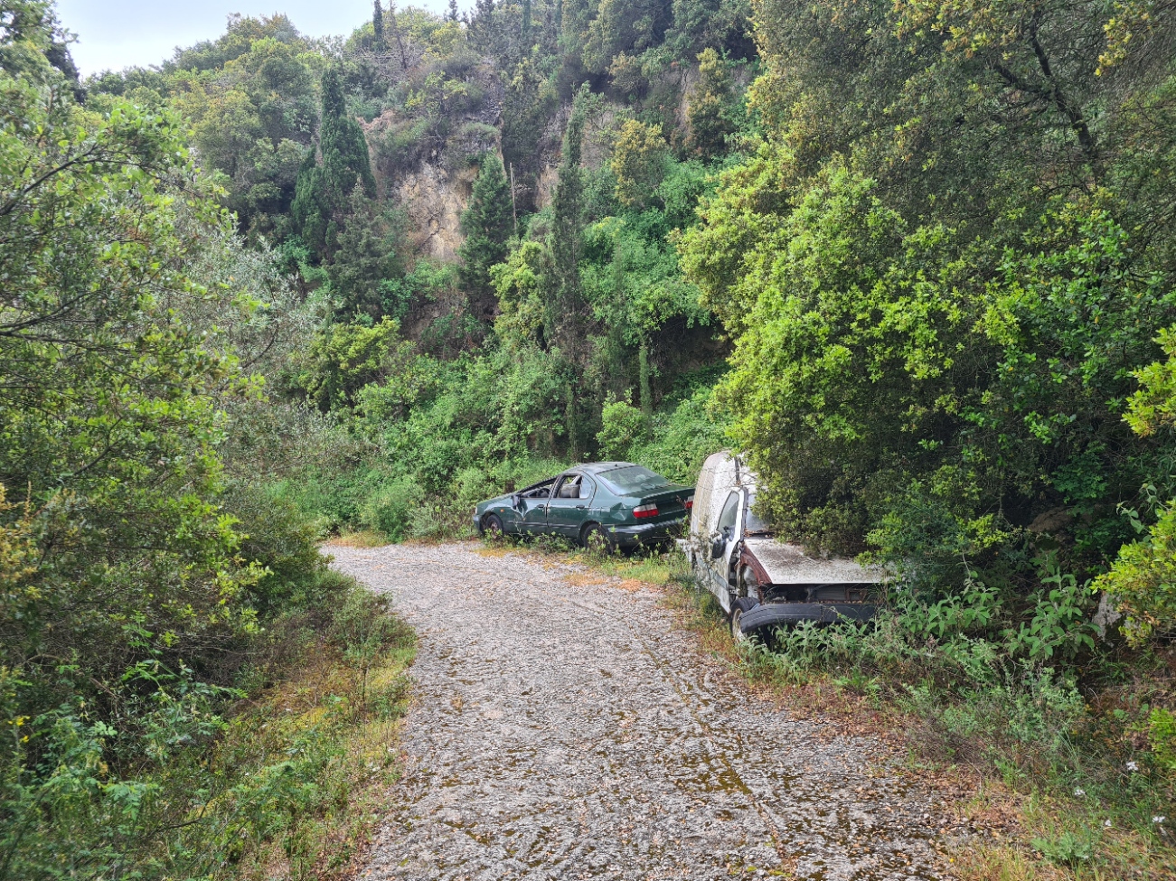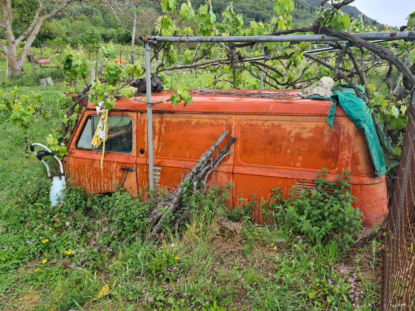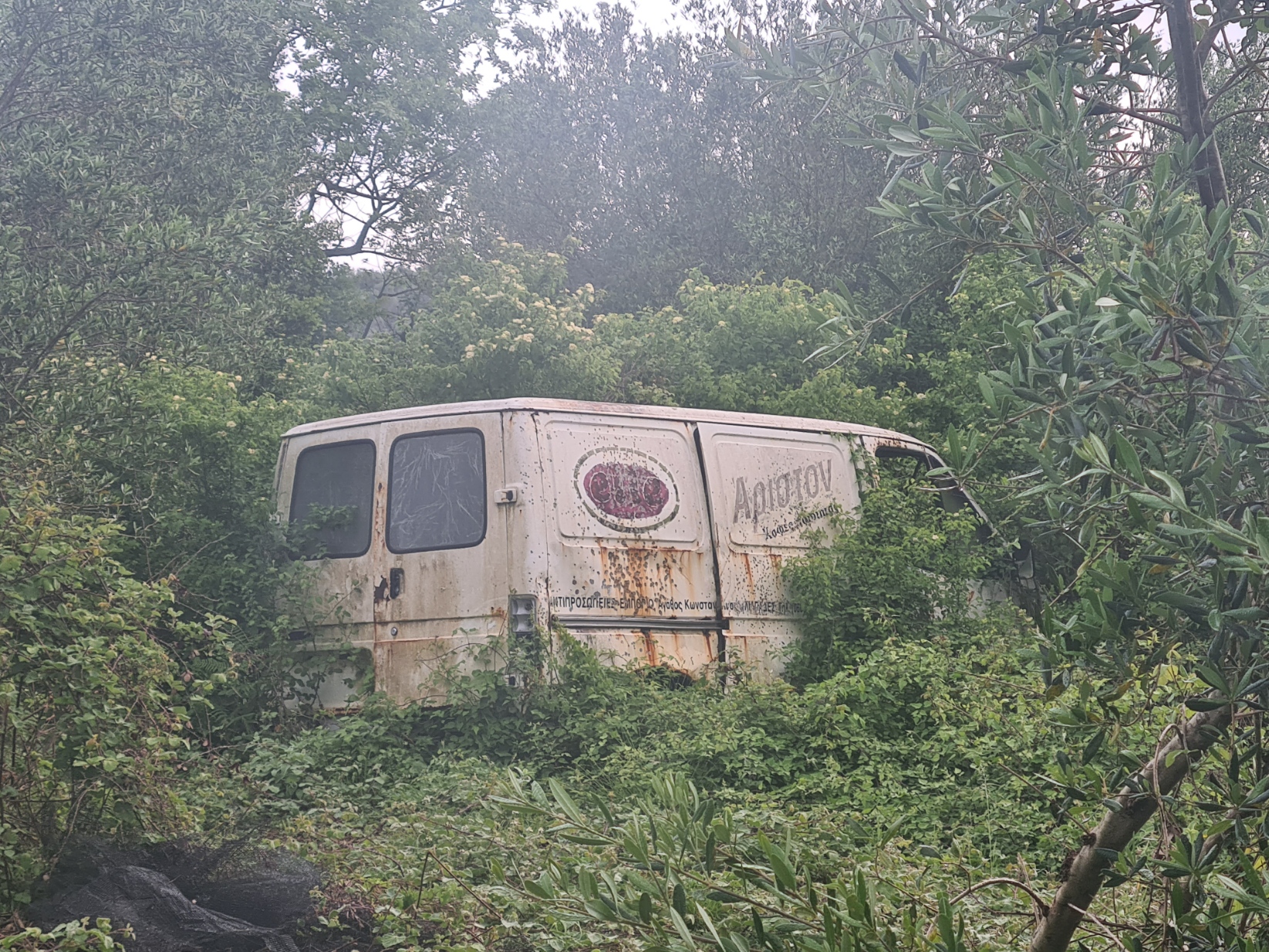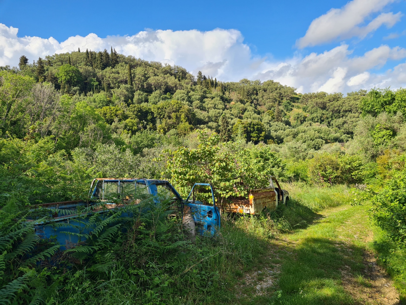 Walking the Corfu Trail it is impossible not to notice the profusion of abandoned vehicles- cars, motorcycles, vans, even a lone bus. The reason for their demise must be varied, beyond practical use, stolen, broken, forgotten or unloved. A selection of just some of those seen over this 150km trail.