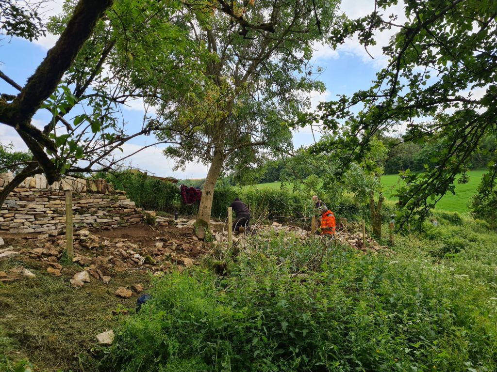 An obvious feature of this part of the country are the many dry stone walls. You see them everywhere. Built from thin pieces of that lovely honey coloured stone. Climbing up toward Crickley through the beech woodlands that cling to the escarpment edge, we were fortunate to run into a small team from a local company both building and repairing long sections of the walls here. We stood for a while chatting about their work. They had more work than they could handle, which is no bad thing. A more expensive task in these quarters than other parts of the country due to the high demand for the stone, in addition to it being painfully slow and highly skilled work. A ton of rock can cost in excess of £200 in itself, and that is before anything has even been done with it. The three were working hard, but there was supposed to be a group of volunteers working with them. We met the group of eight slowly sauntering back from their coffee break in the café a kilometre away.