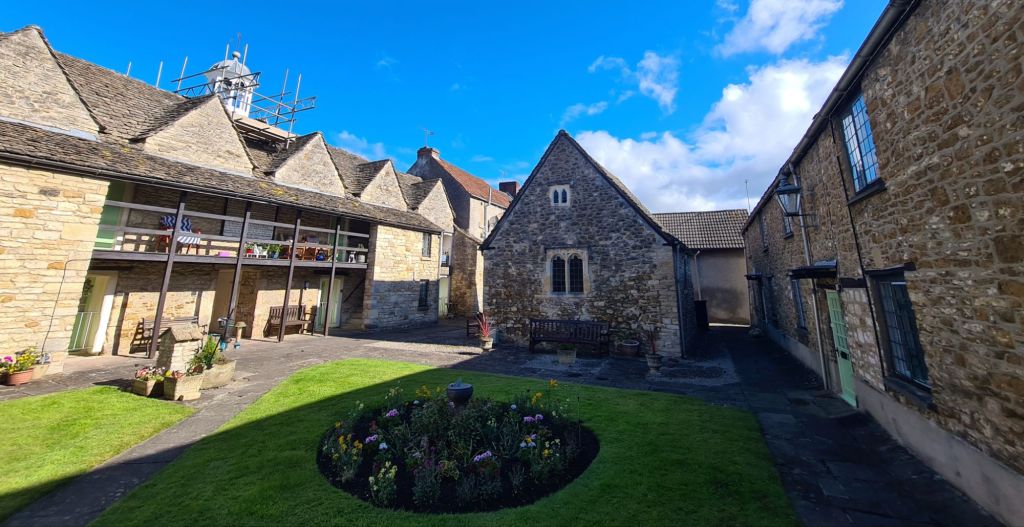 Built 1630 and extended 1712, these almshouses comprised gardens and accommodation for six poor men and six poor women. There is a small Chapel in the yard with stained glass windows showing sheep and wool spinners. The buildings are typical of period Cotswold architecture.
