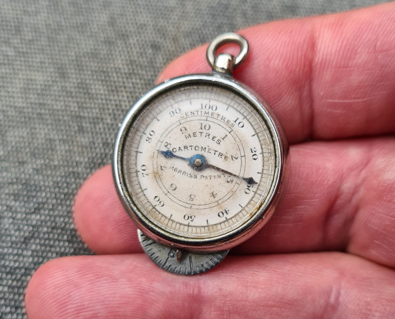 The Cartomètrè is a metric version of the Wealemefna, invented by Edward Russell Morris, of Morris Patents Engineering Works, 50 High Street Birmingham, UK. It was advertised by Morris as “superseding the old fashioned foot rule“. Morris had already produced other analogue measures, though they were mostly a good deal larger and clunkier than the little Cartomètrè.