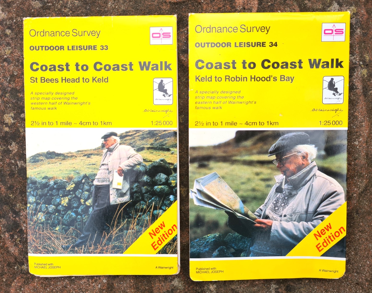 The maps were published as a joint venture between the Ordnance Survey and Michael Joseph, the publishers of Wainwrights guide books. The two sheets were first published in February 1994 then revised in May 1995. The revised editions can be identified by the words ‘New Edition’ on the cover. Both were printed at the standard series scale of 1:25 000. This is 4cm to 1km / 2 1/2 inches to 1 mile. The creation of these strip maps must have been a godsend at the time for those wanting to carry a paper map as there were few options then available. No digital maps on phones back then!