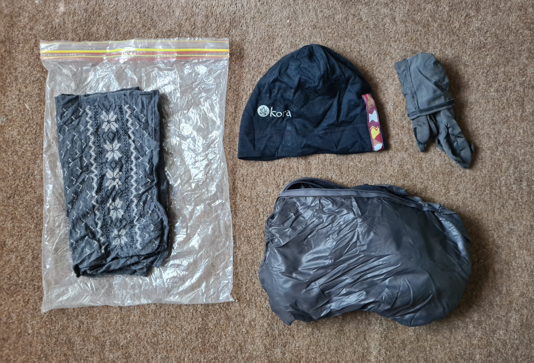 For when it got cooler, I carried some simple insulation layers- puffy, yak wool hat, merino Buff neck gaiter and some thin merino gloves. I also had an old Montane wind jacket for first thing in the morning when it can be a bit chilly.