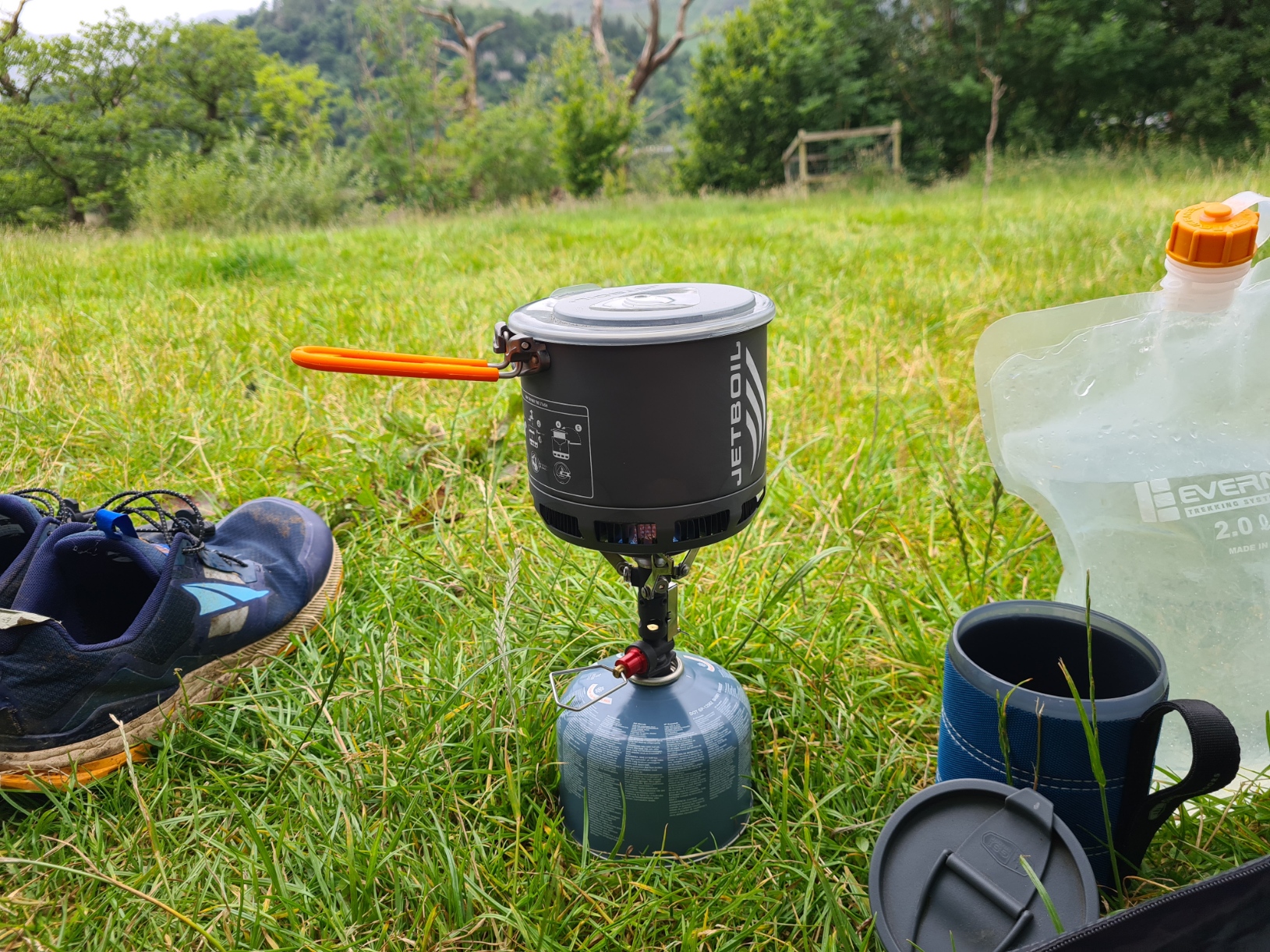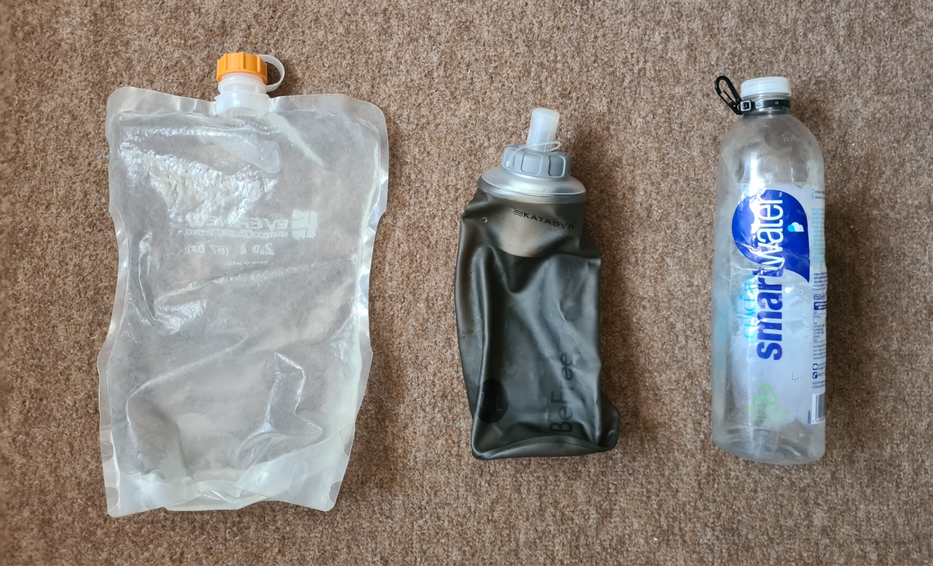 Hydration on trail is all important. As is ensuring water is safe to drink. I carried a similar set of items as I have used for many years. A recyclable plastic bottle clipped to my pack’s shoulder strap for drinking ‘on the go’. This bottle has already been used for a few hundred miles and will likely do a few hundred more. I had my two-litre Evernew bladder, mostly for evenings in camp. This is at least a decade old and has never leaked or failed on me. I like a filter and am still using the Pure Clear water filter, that will also remove some viruses if present, though boiling is the sure-fired way of killing these off. This was screwed into a one-litre HydraPak ‘dirty-water’ bladder. As back-up, I have few Chlorine dioxide tabs secreted in my ditty bag in case of failure in this primary purification system.