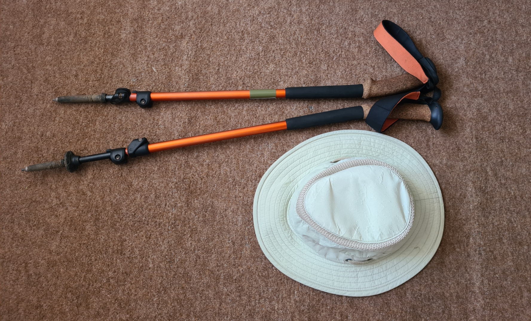 One of my most adaptable items of walking gear is my wide brim Tilley hat. This provides both protection from the sun and keeps rain off my glasses. The brim can be a bit floppy in strong winds but I usually persist.