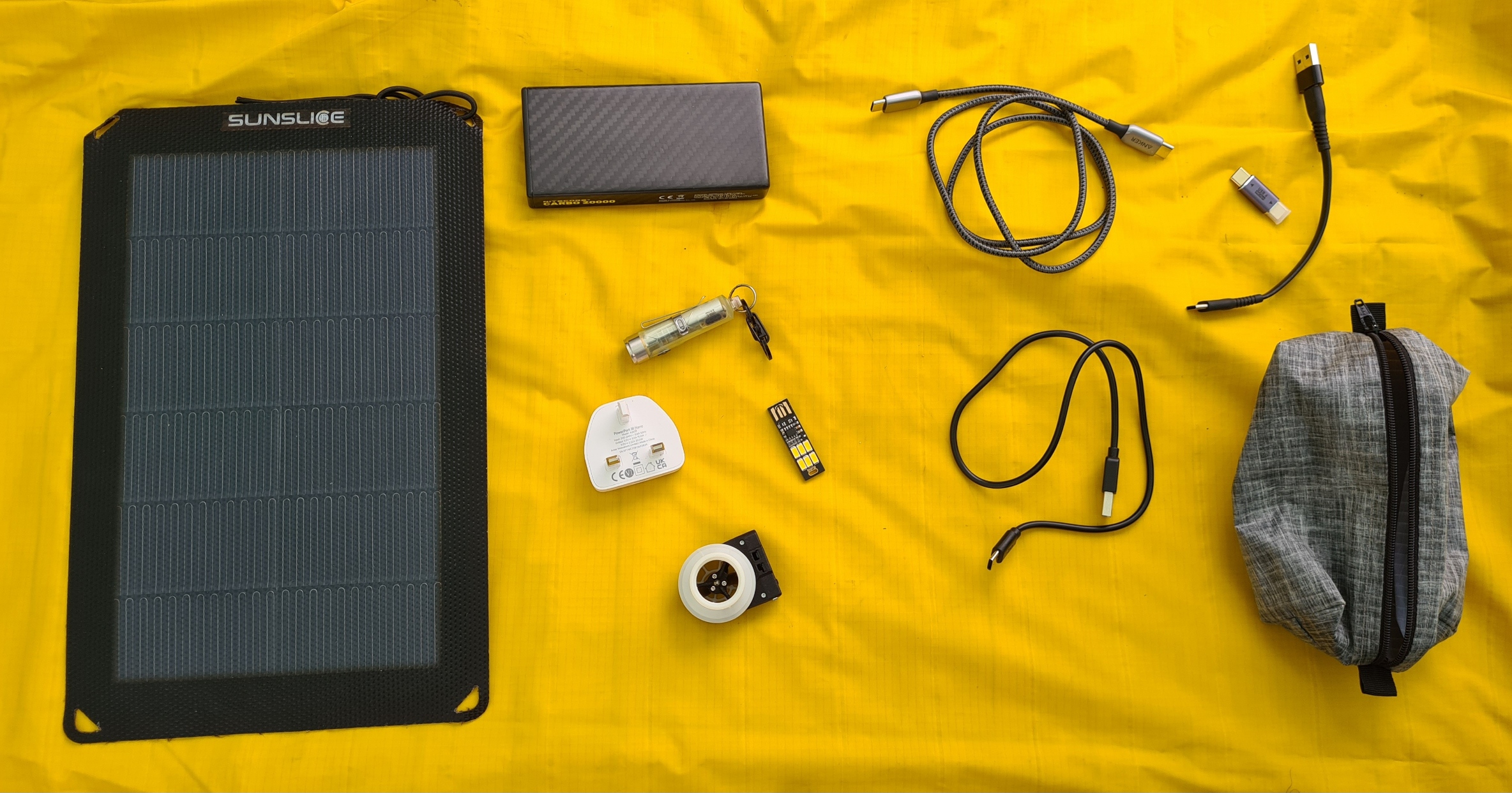 I won’t go into detail for most of these small things as I have covered that ground before, but will mention the electronics as the backpacker cannot necessarily rely on charging phones etc while on trail. I included a solar panel, which worked well, but still carried a 20k powerbank instead of a 10k in case it rained, which it did! The solar panel was a new one for me this year. The Sunslice Fusion Flex6 6 watt flexible panel kept my powerbank topped up despite often grey or wet days. A review on this panel will follow later this year.