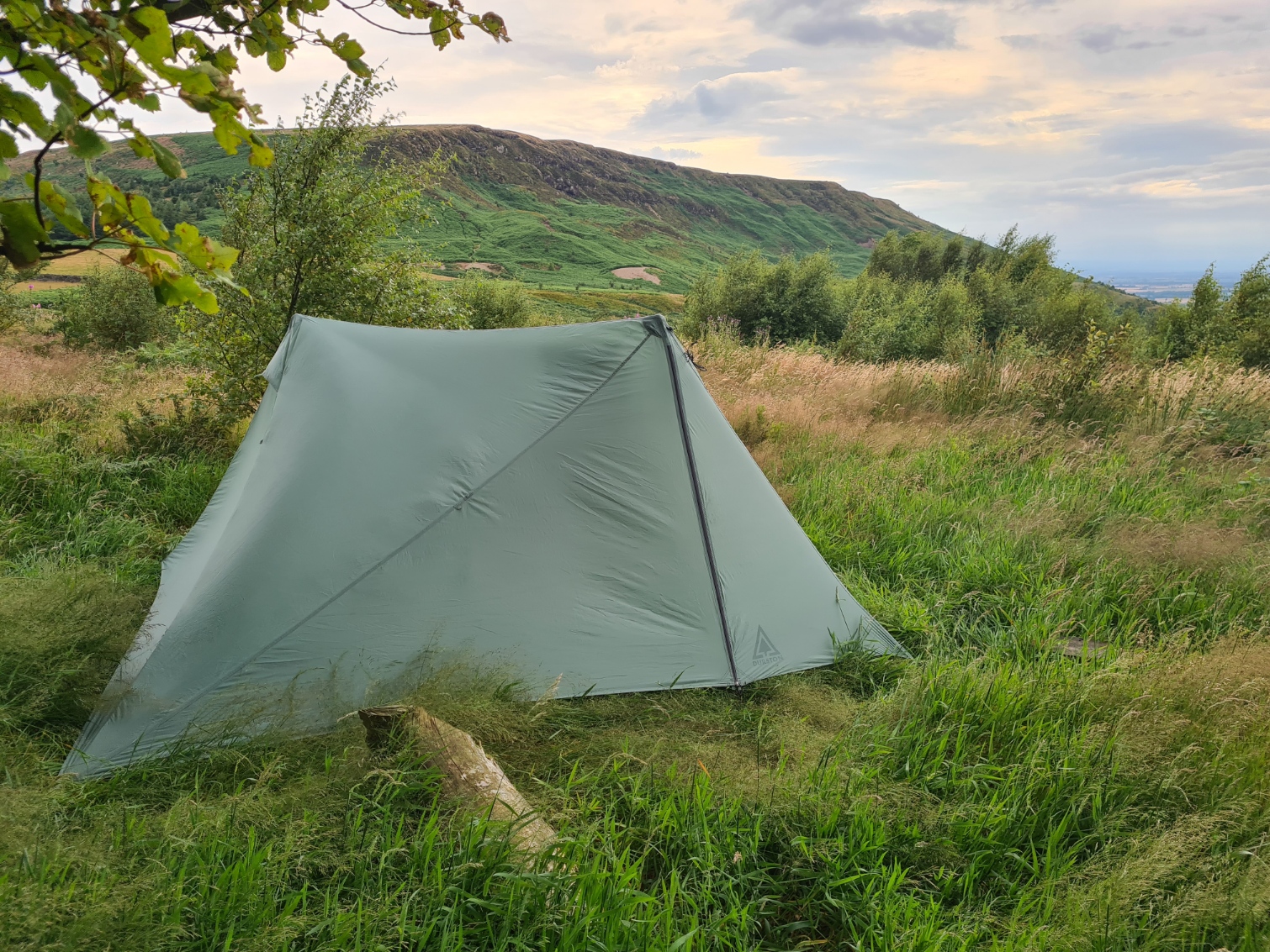 I took my Durston Gear X-Mid two-person Solid tent on this hike. Some backpackers go for tiny one-person shelters. Why I don’t know. I hate crawling inside those coffin sized affairs. It isn’t as though there is much weight advantage these days as modern materials and designs means that good two-persons shelters weigh not-a-lot. My Durston has a mostly ‘solid’ inner, that keeps draughts away better than the mesh alternatives. This is a trekking pole tent so I don’t need to carry tent poles and instead use my two walking poles. This silicone coated woven fabric tent is heavier than the DCF shelters I often use but is still lightweight. The outer weighs 642g and inner 454g. The pegs this comes with are not up to dealing with the varied ground conditions encountered on a Coast to Coast crossing, so were swapped out for a selection of MSR Groundhogs and Mini Groundhogs, plus a couple of Ti pins for hammering into rocky/hard ground and two wide titanium V stakes for softer terrain. I also carried a couple of spare guys in case I wanted to nail the shelter down a bit better in windier conditions.