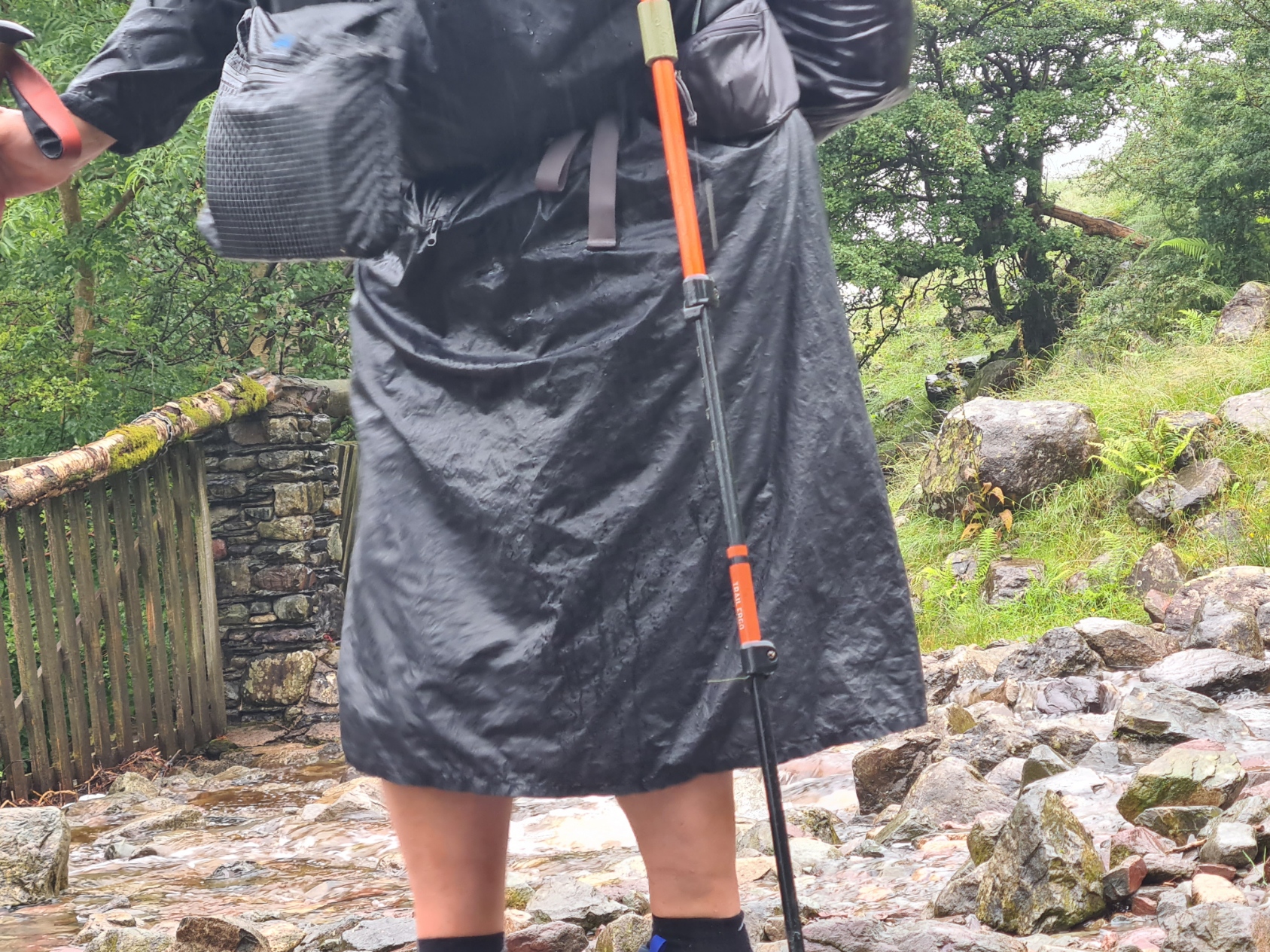 Again, I kept things simple and lightweight with a non-breathable 100% waterproof 2.0 AntiGravityGear Ultralight Rain Jacket with long pit zips and a ULA rain skirt. The latter will leave most people shaking their heads but I have been using this for some years now and I find it a good lightweight way of keeping the waist, crotch and upper legs dry. I don’t worry about the lower legs as I practise ‘wet-feet walking’ with my breathable Altras anyway. Others might want full length waterproof trousers, fine. Combined with my wide brimmed hat, this combination of waterproof worked well for me in frequently wet conditions.
