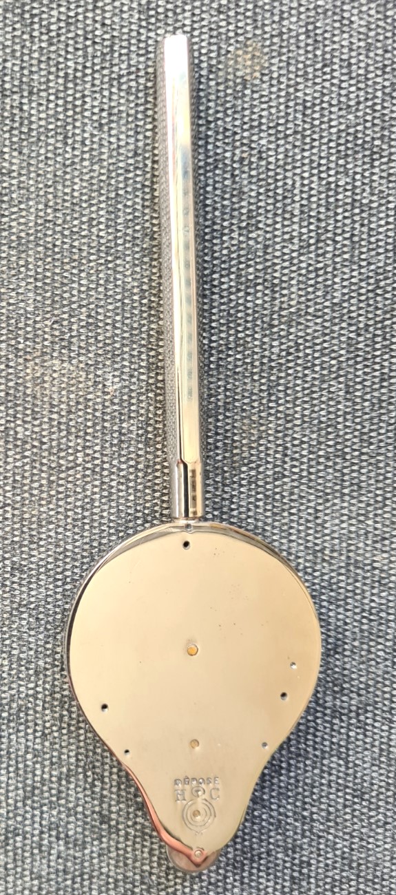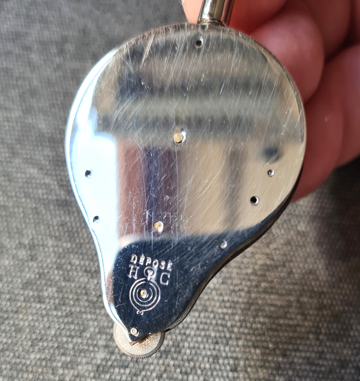 The initials on the rear of the case indicate the maker- ‘Henri Chatelain’. The initials HC are above a curvimeter, the centre of the curvimeter trademark logo being one of the pivot pins for the internal mechanism cogs. There is also the word ‘Déposé‘ above the trademark. This word is not part of the trademark but simply indicates that the manufacturer has registered the design. Despite having left a legacy of beautifully constructed instruments, it is difficult to tie down much information about Henri Chatelain beyond the manufacturer being founded in the late 1870s (variously 1876 or 1878) and based at 10 Rue de Belzunce, Paris, France.