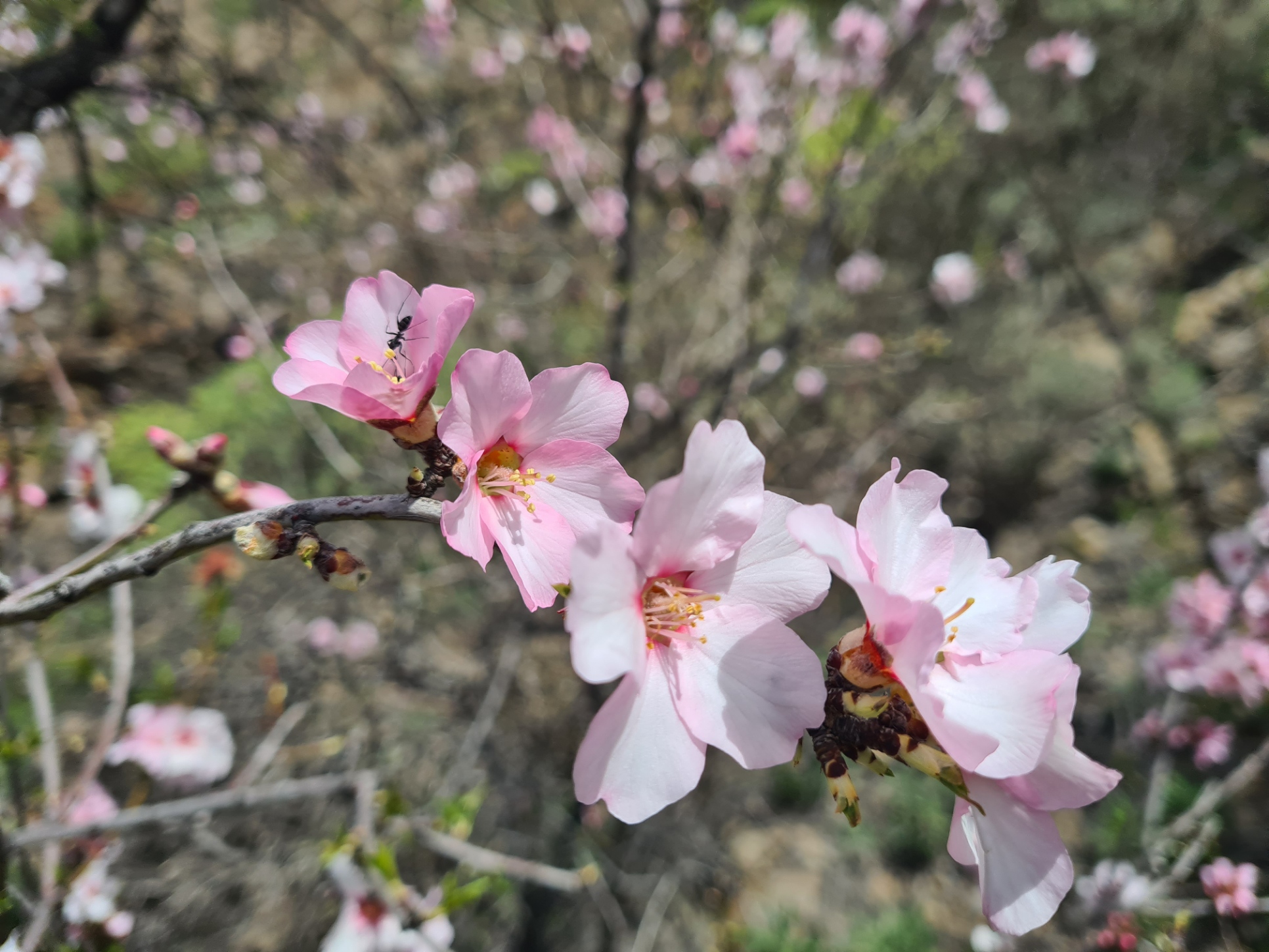 Cats lazily paced the streets, one or two following us for some distance as we found our way up through the winding narrow streets, heading out of town. We were soon on to a lovely climbing track up to Cruz Grande, through scattered pines, the smell fresher and cleaner than any supposed ‘pine’ air freshener. The views back as far as the coast were slowly getting pretty wonderful as we steadily wound our way up and round the mountain side, chatting about anything and everything as we walked.